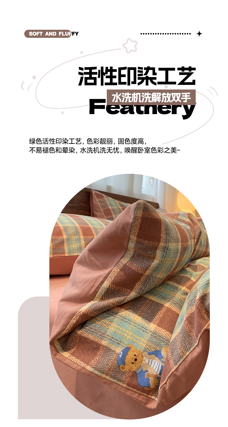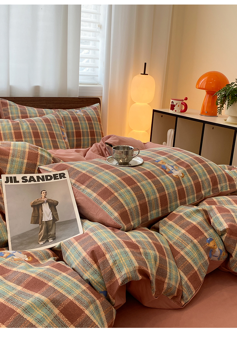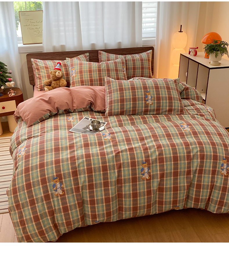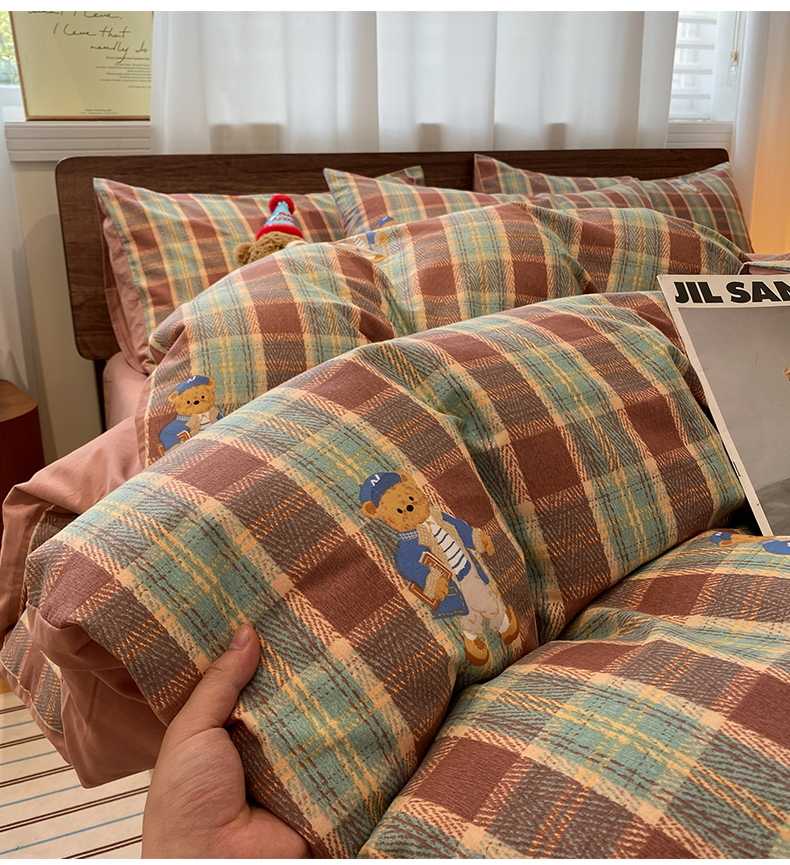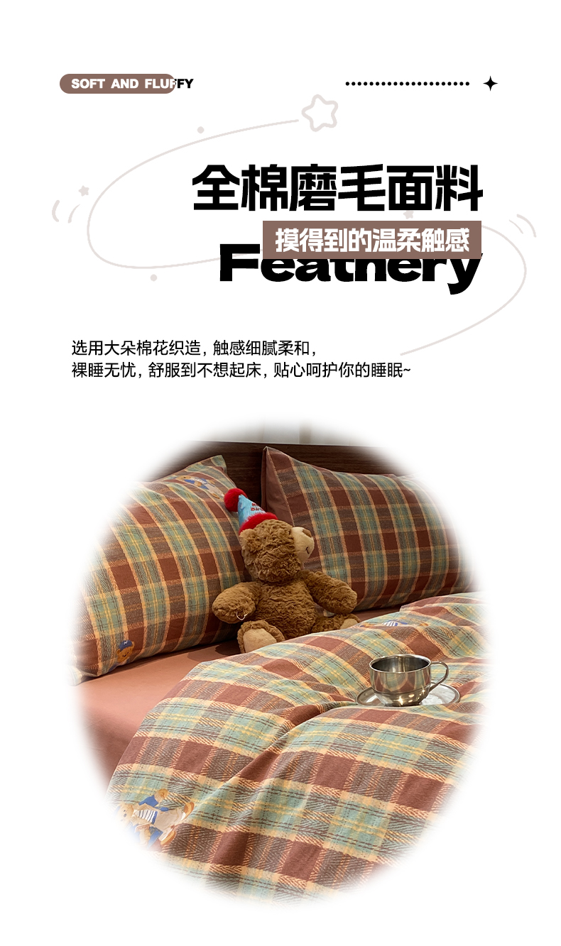 当前位置: 91家纺网 > 商品网购 > 床品套件 > 四件套 > 全棉普通四件套 > 莱登卡奴 2025新款A类100%全棉磨毛条格卡通系列四件套 杰瑞