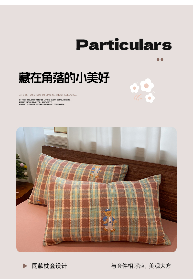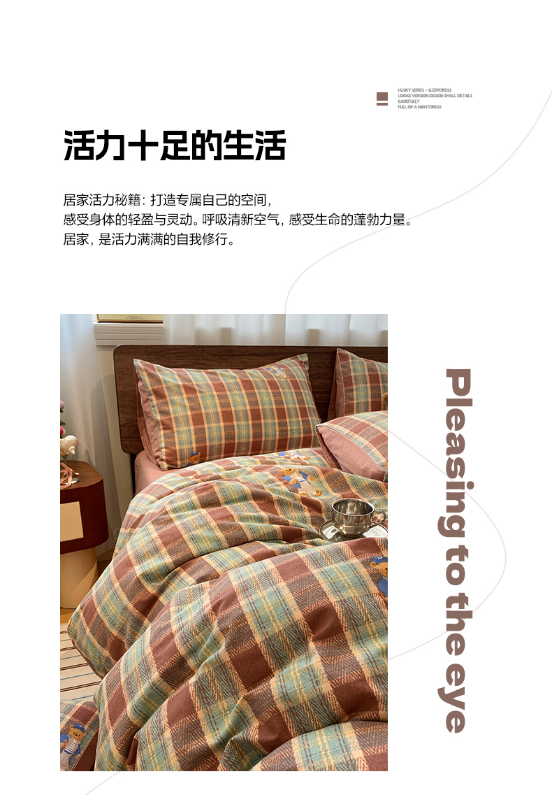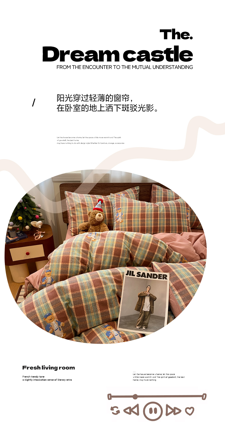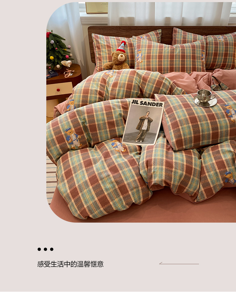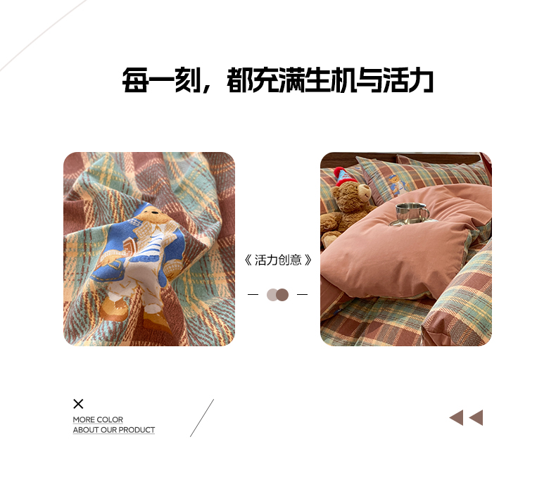 当前位置: 91家纺网 > 商品网购 > 床品套件 > 四件套 > 全棉普通四件套 > 莱登卡奴 2025新款A类100%全棉磨毛条格卡通系列四件套 杰瑞