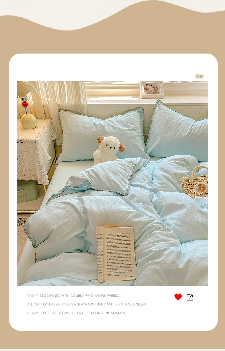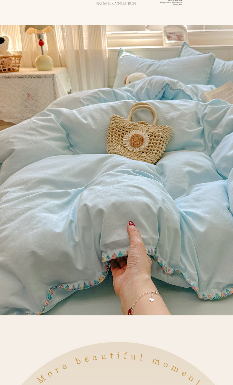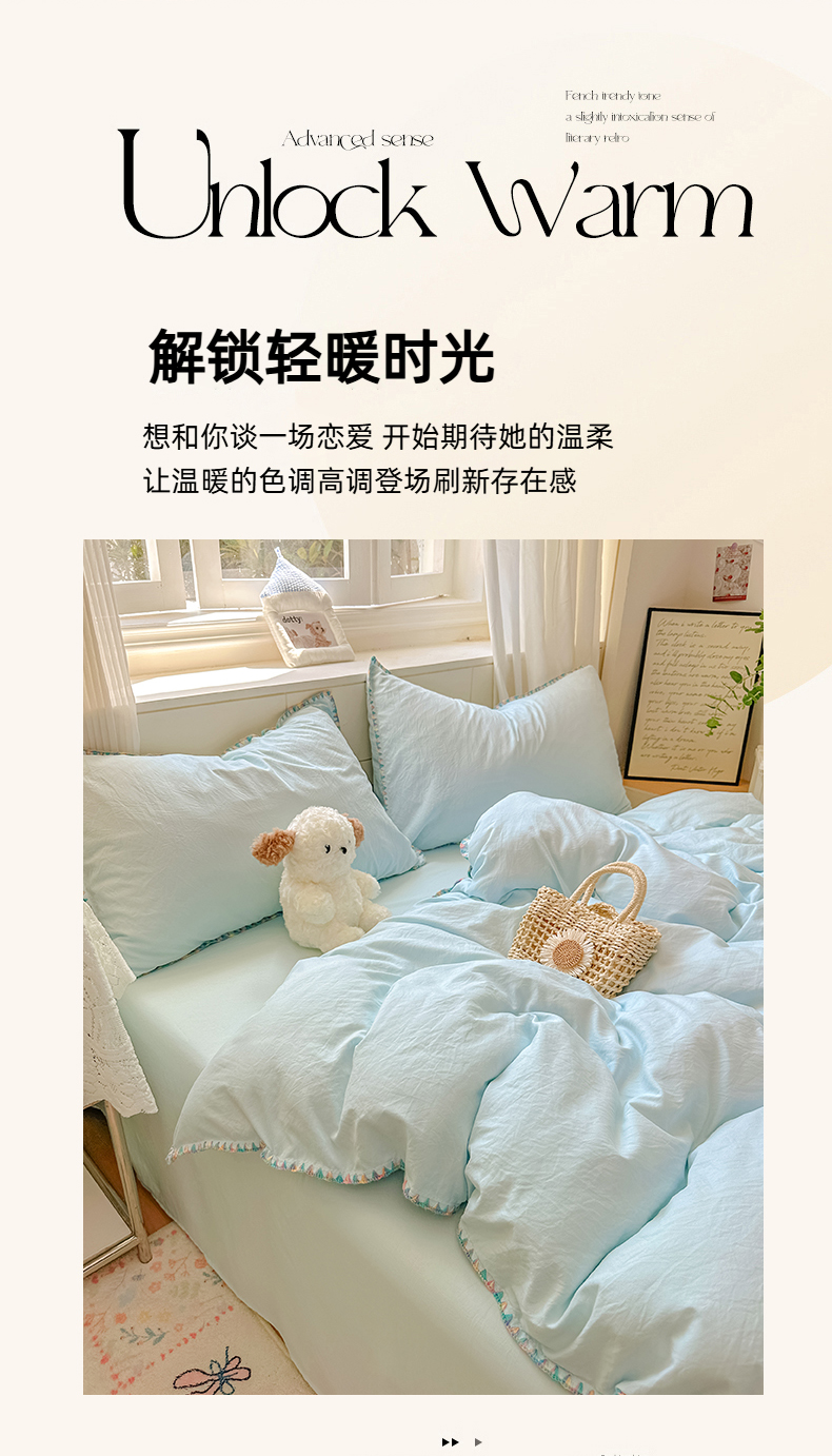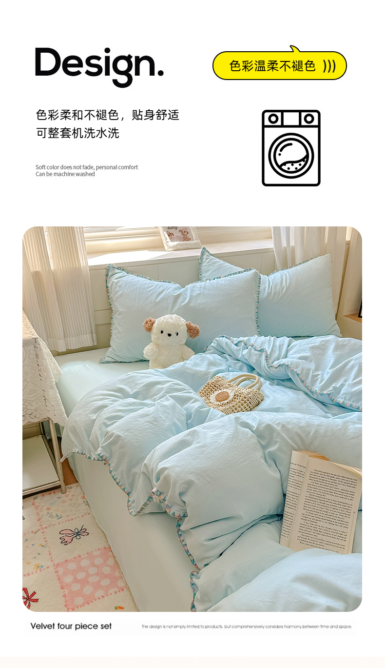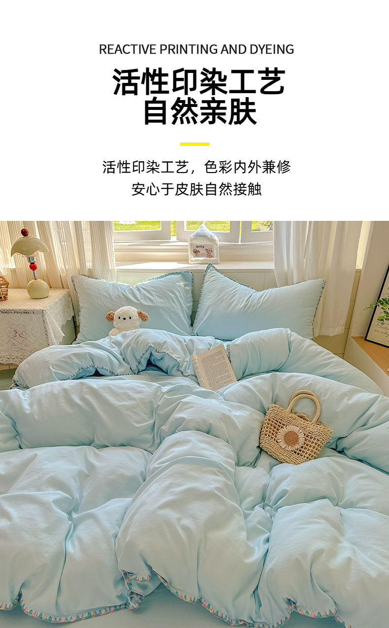 当前位置: 91家纺网 > 商品网购 > 床品套件 > 四件套 > 水洗棉四件套 > 冕悠家纺 2025新款A类七彩贝壳边水洗棉四件套 七彩-云水蓝