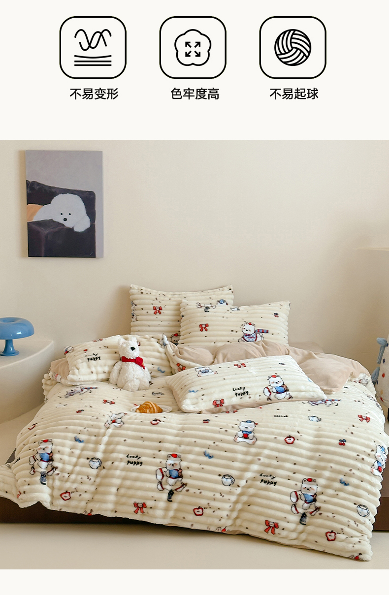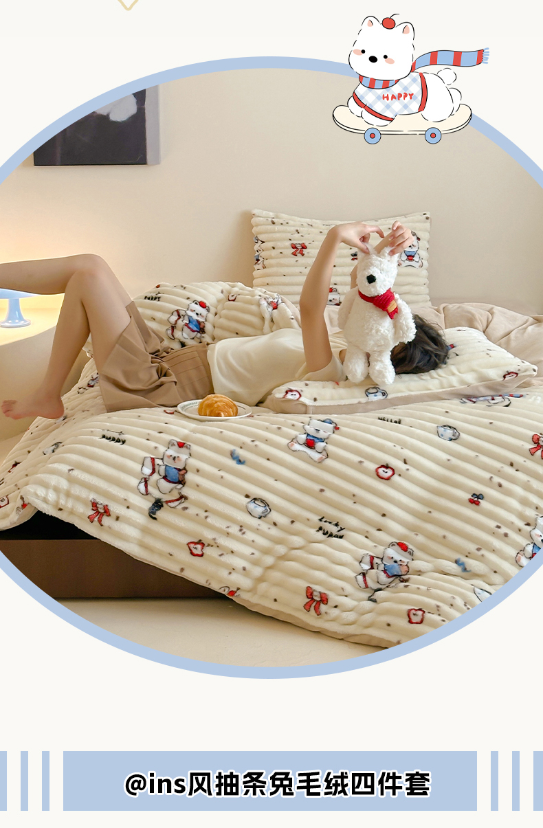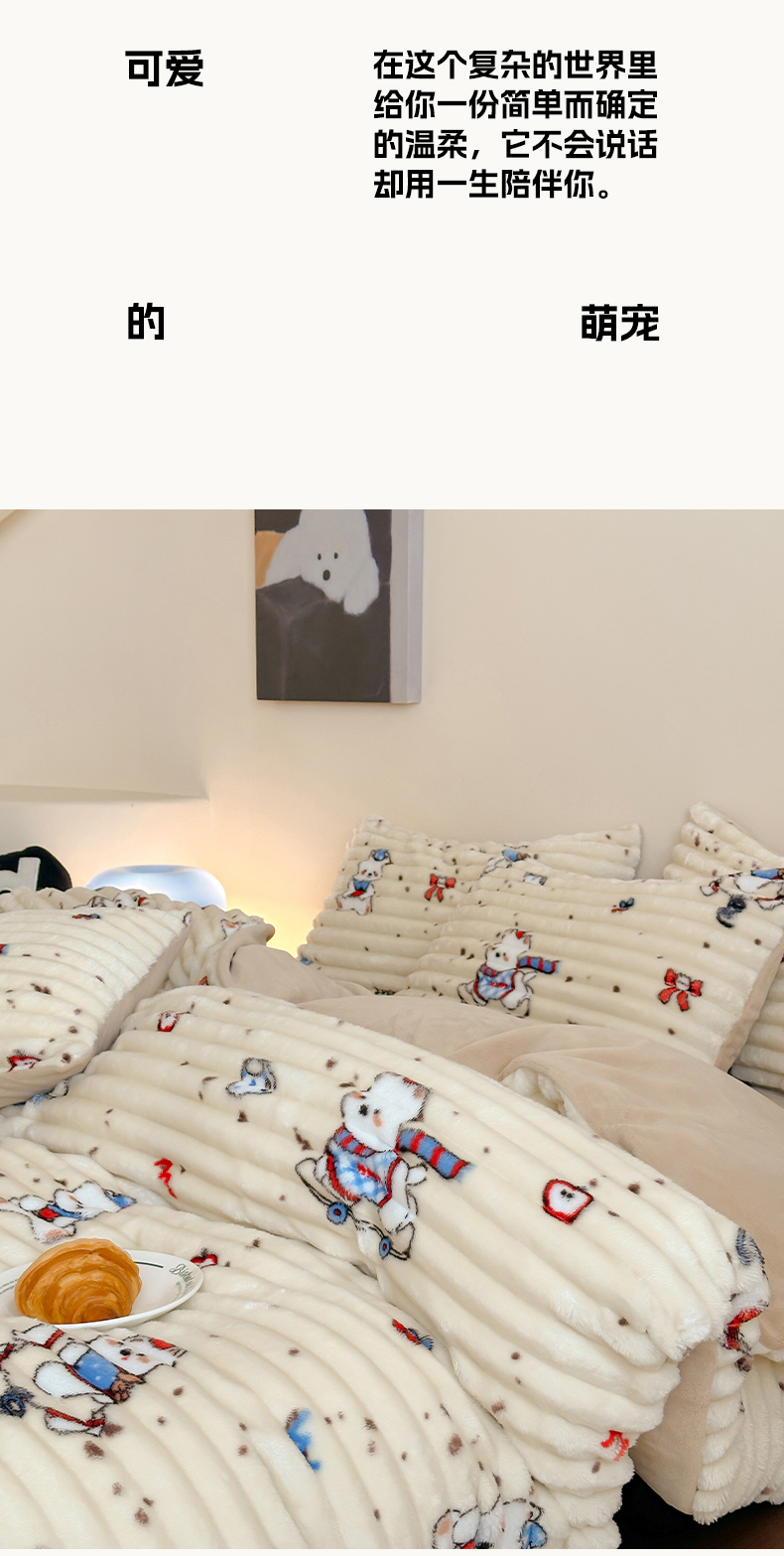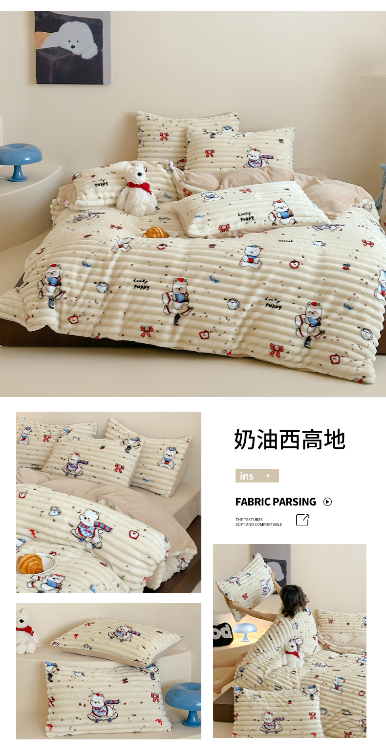 当前位置: 91家纺网 > 商品网购 > 床品套件 > 四件套 > 牛奶绒四件套 > RYB红黄兰 2025新款设计师原创A版抽条兔兔绒B版牛奶绒印花四件套 奶油西高地