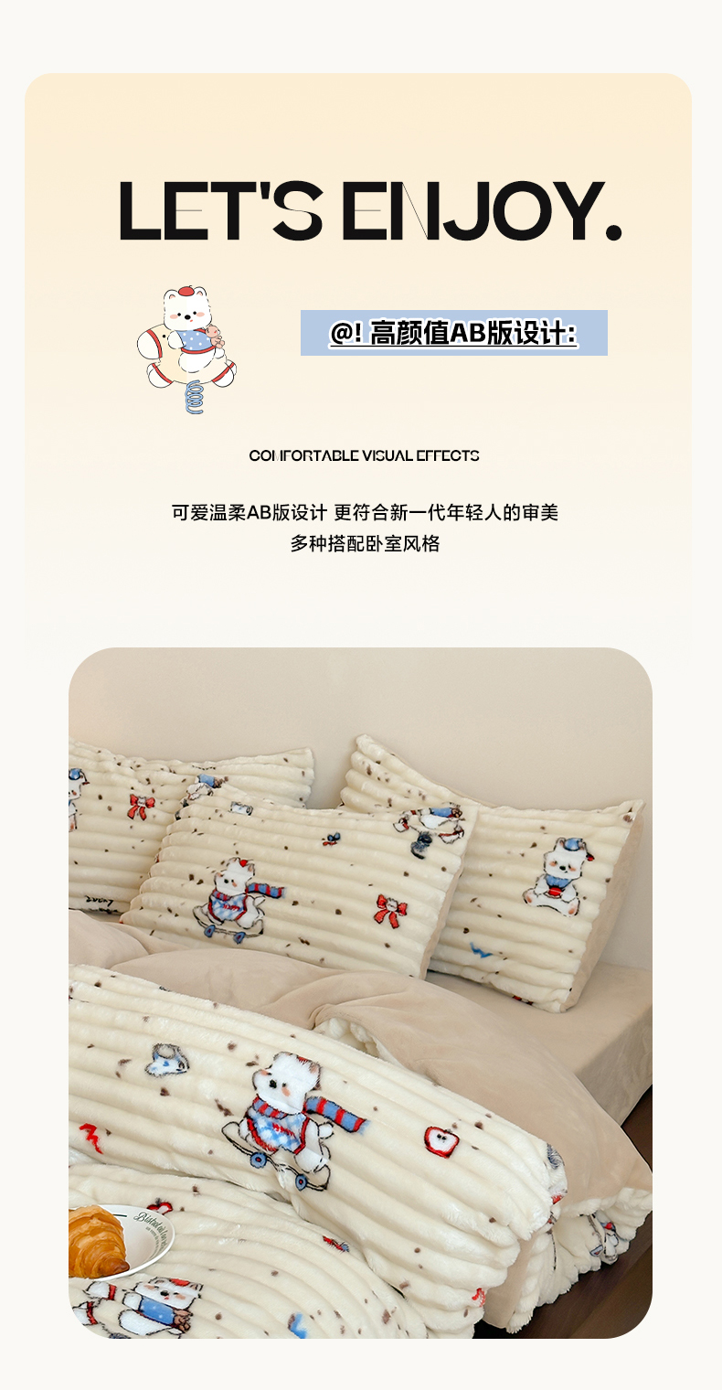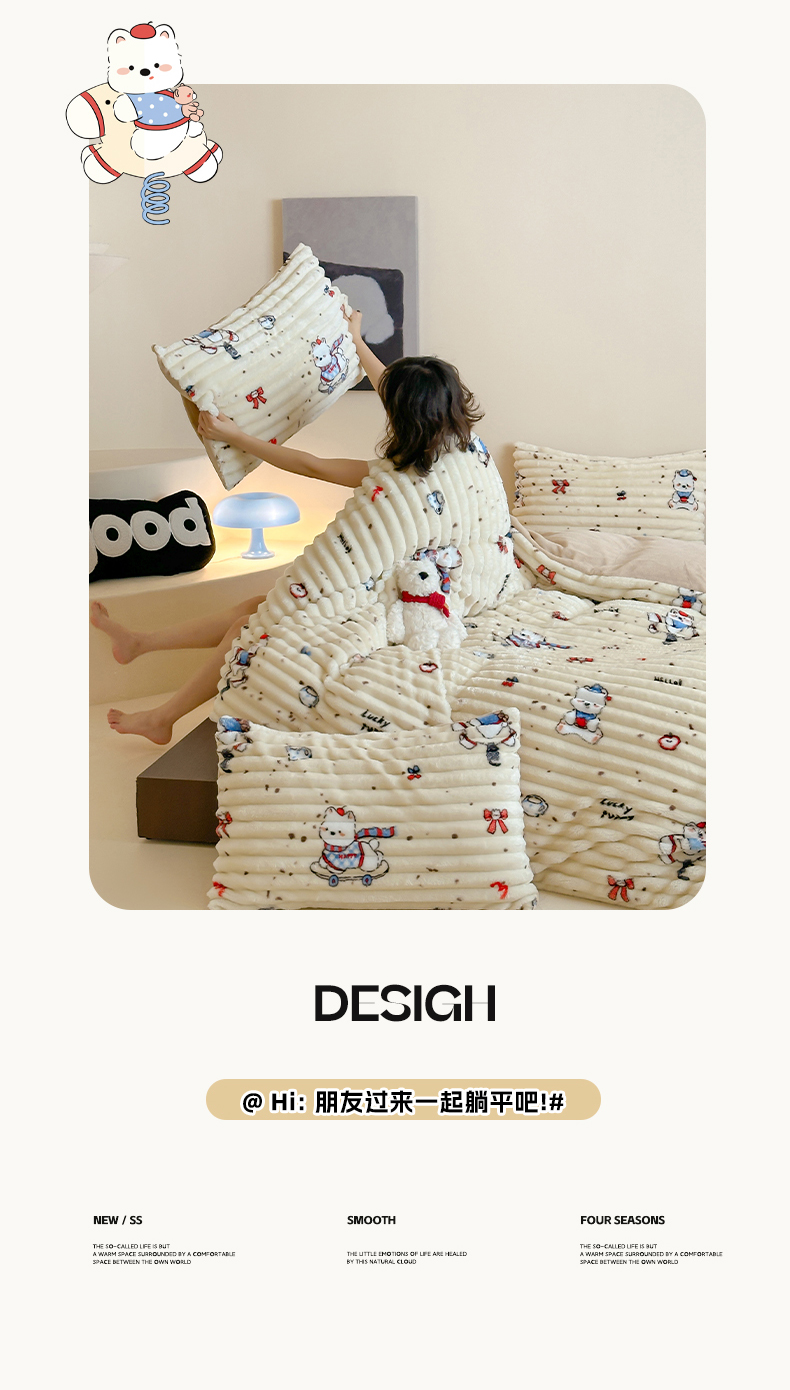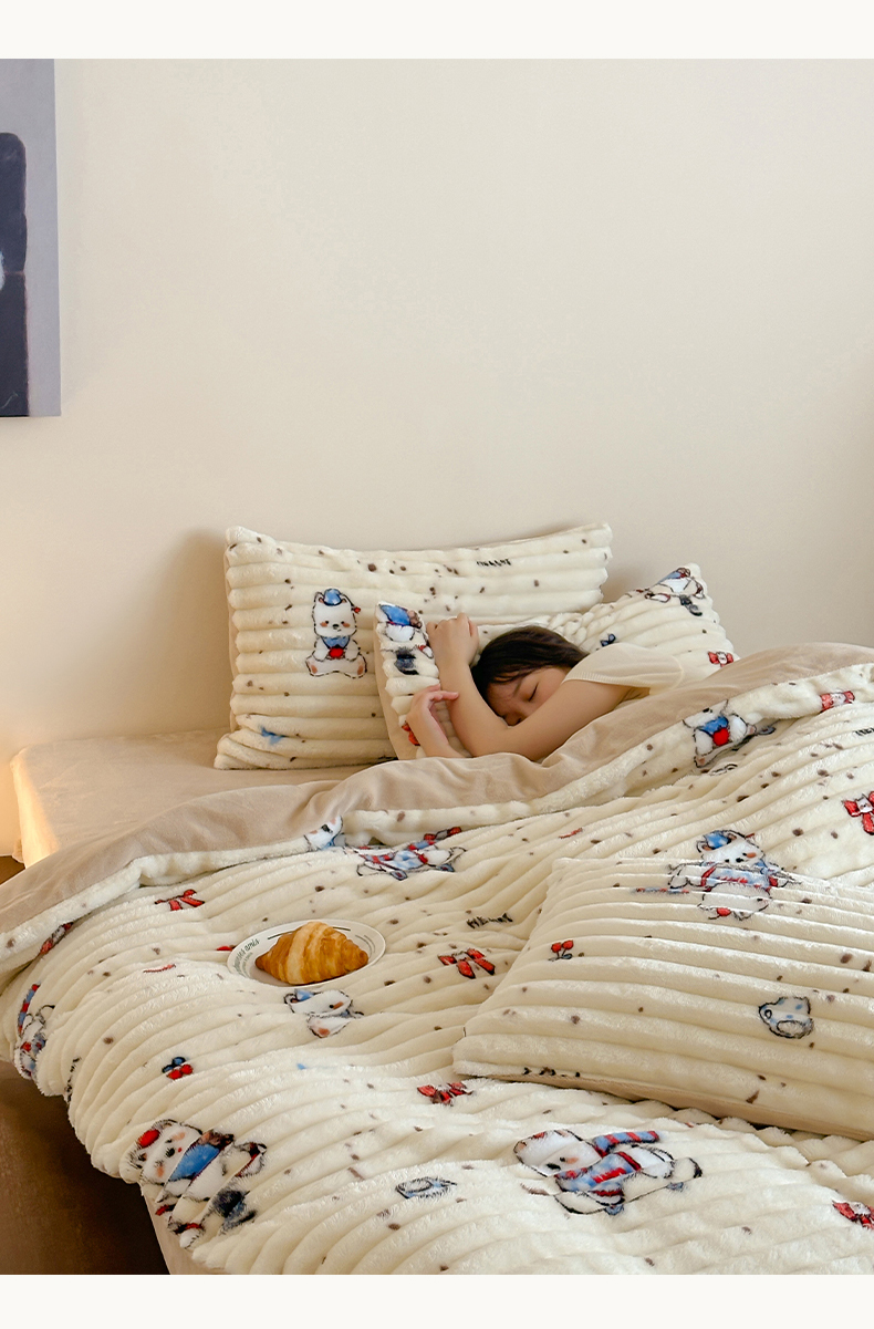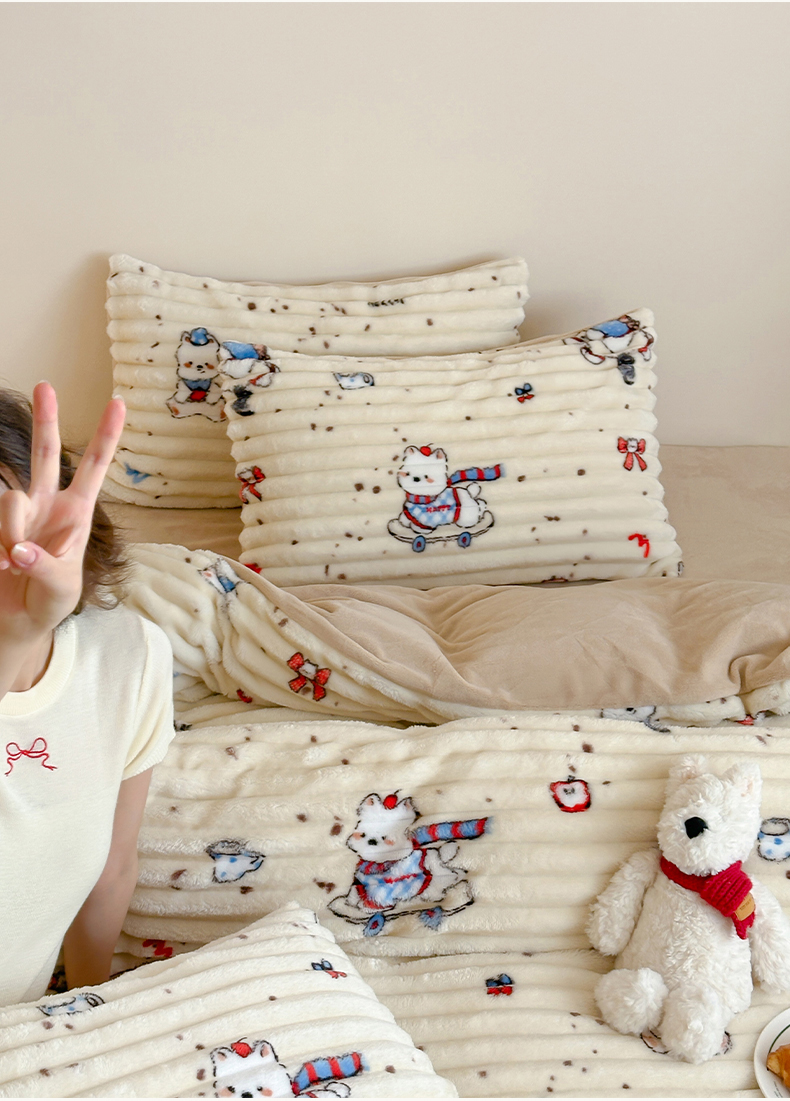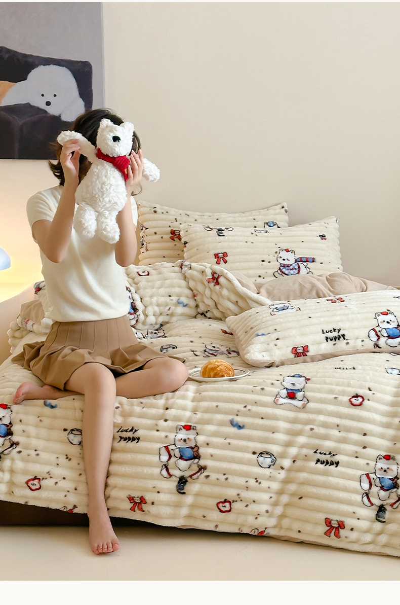 当前位置: 91家纺网 > 商品网购 > 床品套件 > 四件套 > 牛奶绒四件套 > RYB红黄兰 2025新款设计师原创A版抽条兔兔绒B版牛奶绒印花四件套 奶油西高地
