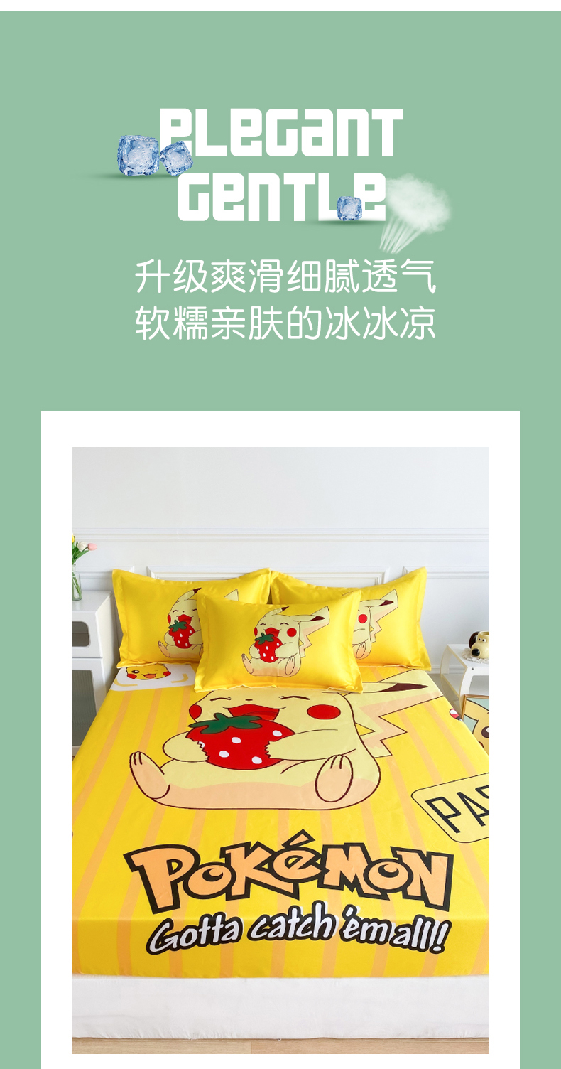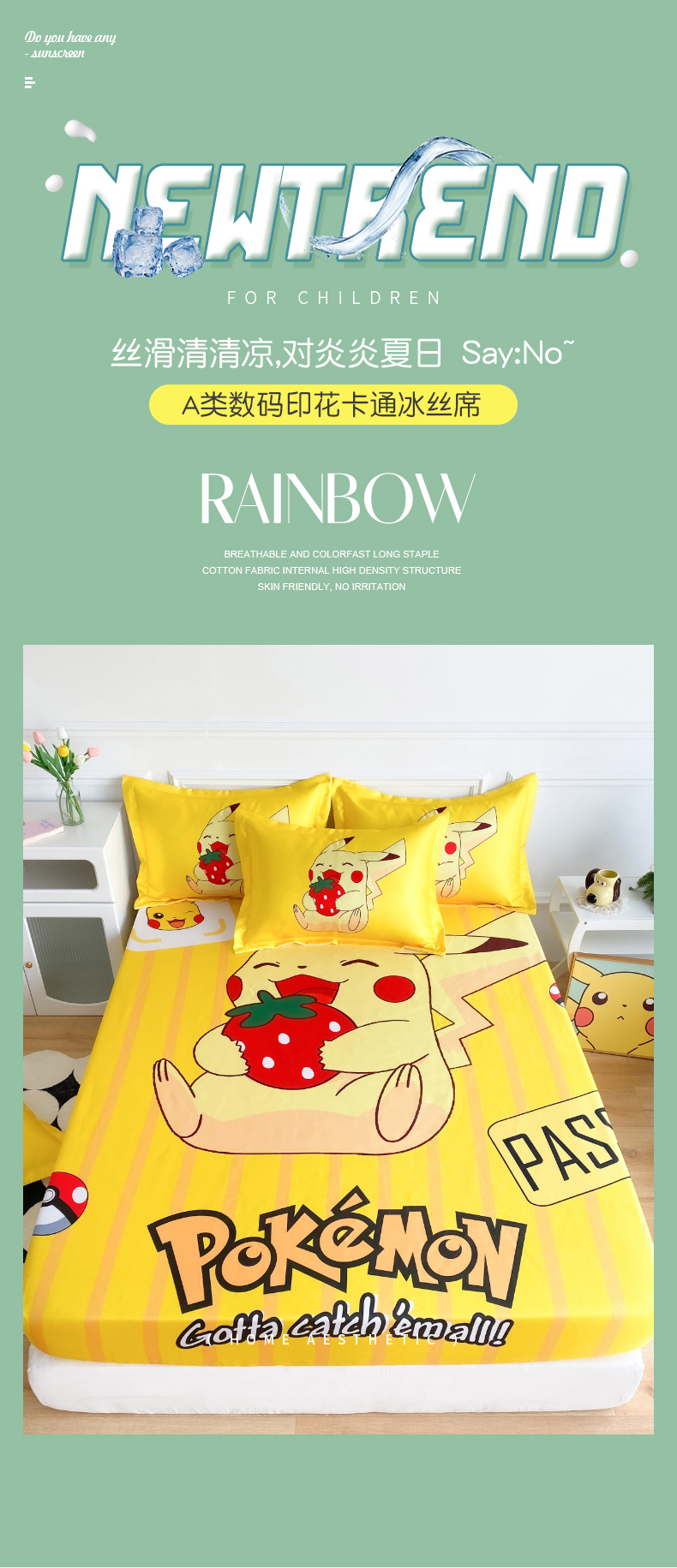 一电 2025新款跨境电商外贸夏季卡通冰丝凉席床笠可水洗学生宿舍单人空调席子 草莓皮卡丘