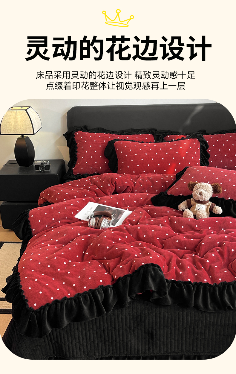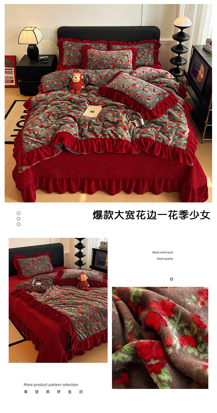 当前位置: 91家纺网 > 商品网购 > 床品套件 > 四件套 > 牛奶绒四件套 > 富米莱(原臻工厂) 2025新款热卖舒适大宽花边牛奶绒床盖床裙四件套 爆款大宽花边-花季少女