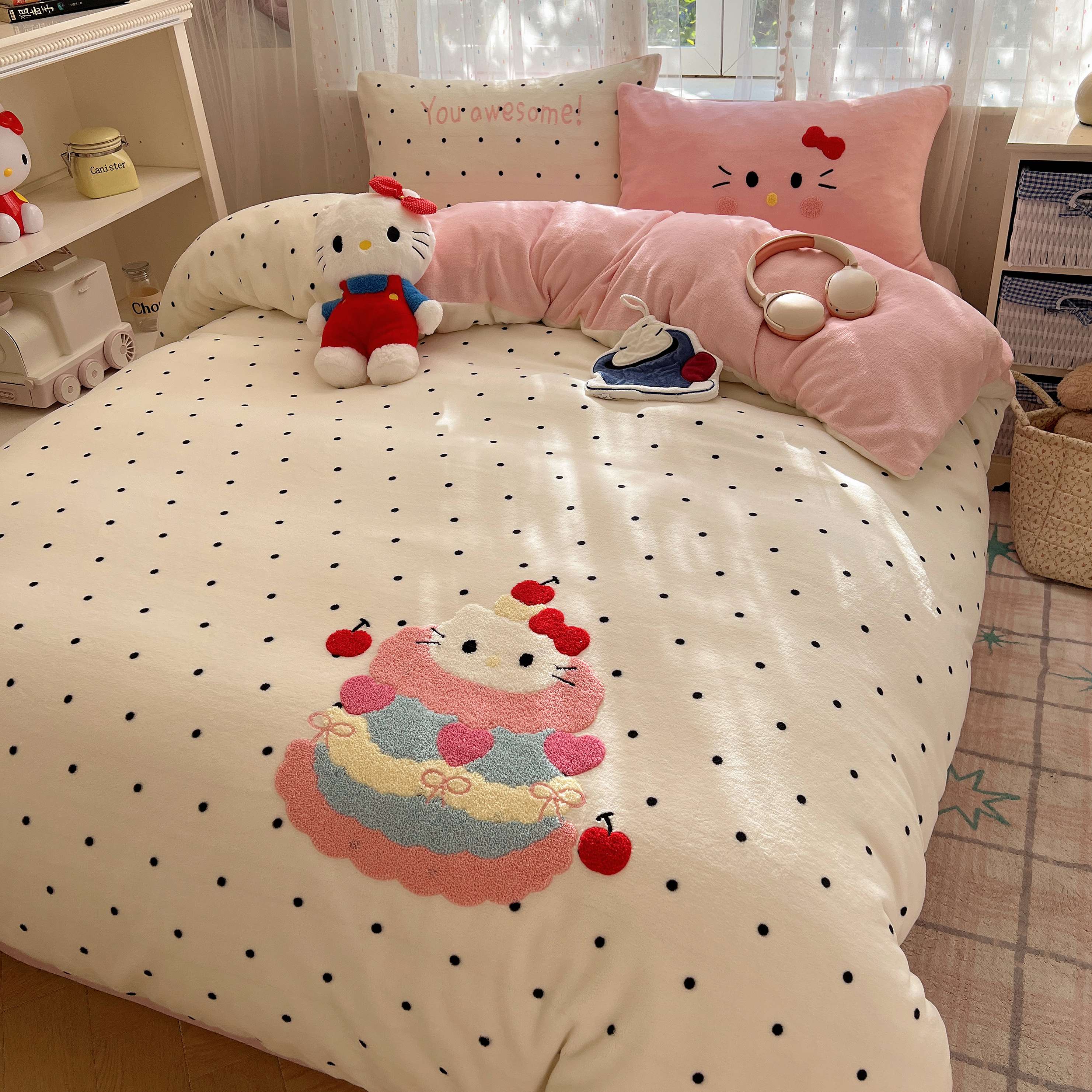 (总)顾里家纺 2024新款ins韩风甜感刺绣标牛奶绒四件套,蛋糕狗狗,烛台小熊,ins可颂,ins苹果,ins沙发狗,ins小象,ins樱桃猫