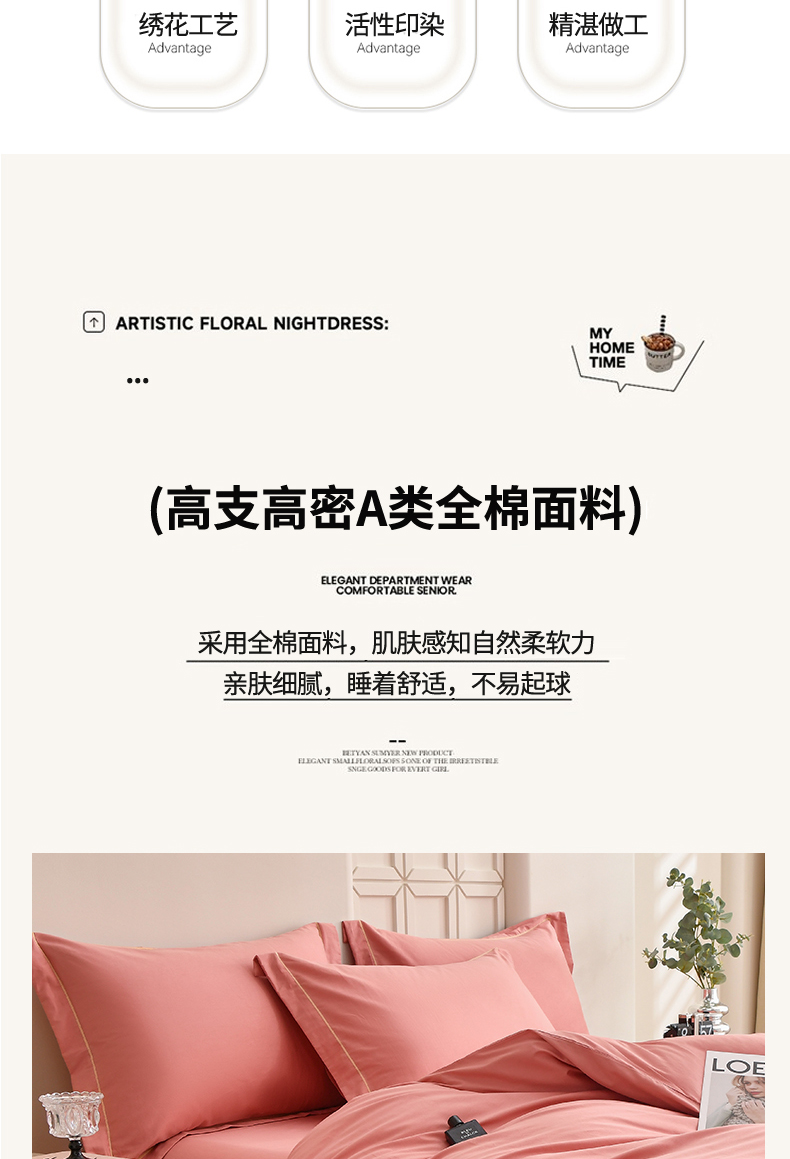 床上用品 > 被套 > 宇彬家纺 2026直播热爆新款A类13374全棉母婴级一字绣宽边枕套被套纯色单被套贡缎新疆长绒匹马棉轻奢可定做 一字绣-奶油粉