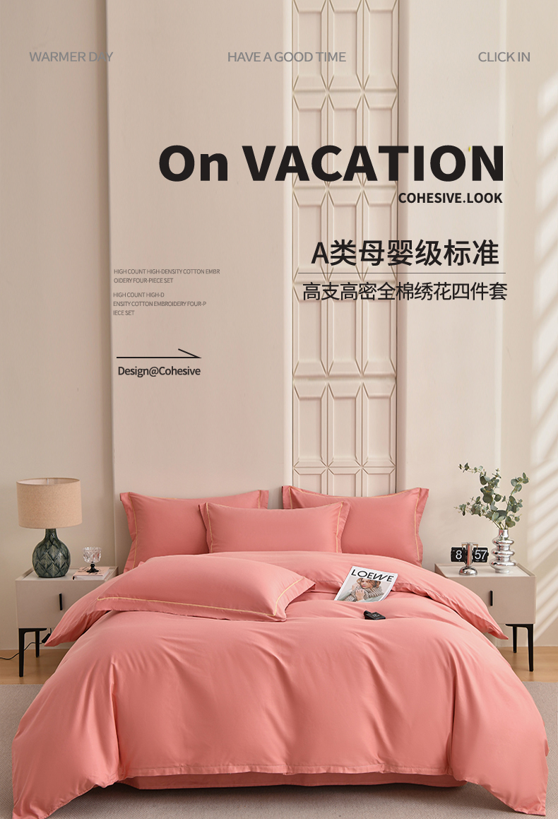 (总)宇彬家纺 2026新款A类13374全棉纯棉母婴级纯色四件套贡缎新疆长绒轻奢缩水足可定做,一字绣-宝石红,一字绣-宾利蓝,一字绣-典雅紫,一字绣-摩卡绿,一字绣-奶油粉,一字绣-绅士灰,一字绣-炫彩绿,一字绣-紫豆沙