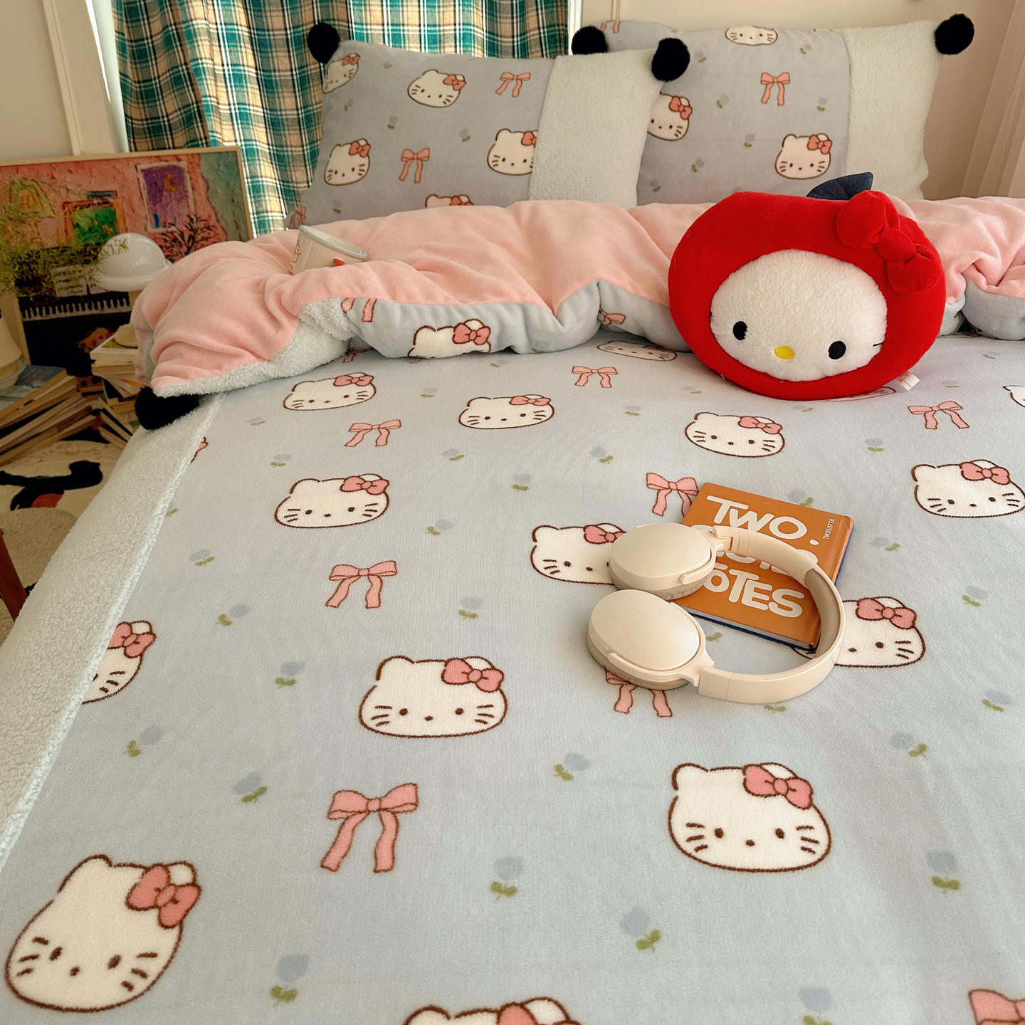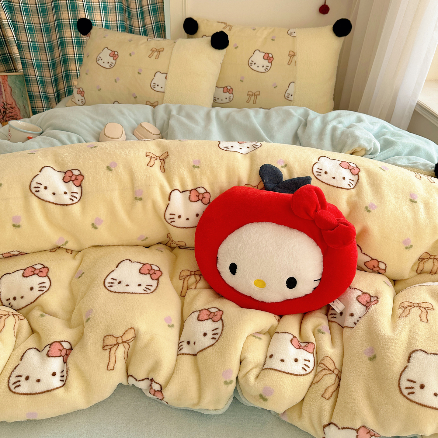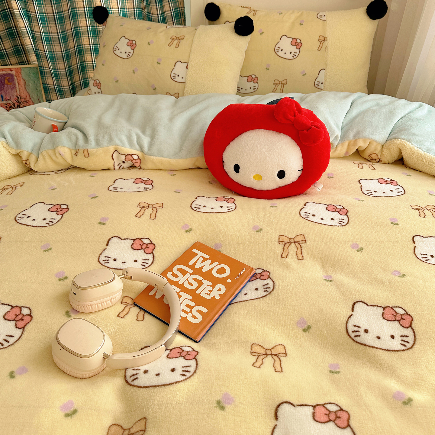 (总)顾里家纺 2025新款兔毛蝴蝶结喵酱牛奶绒四件套,蝴蝶结猫咪白,蝴蝶结猫咪粉,蝴蝶结猫咪黄,蝴蝶结猫咪咖,蝴蝶结猫咪蓝