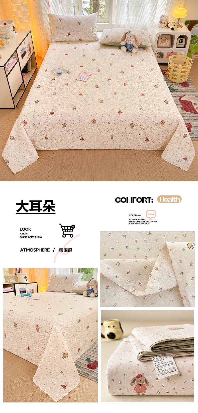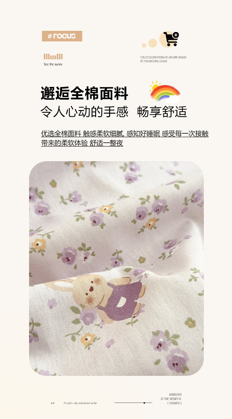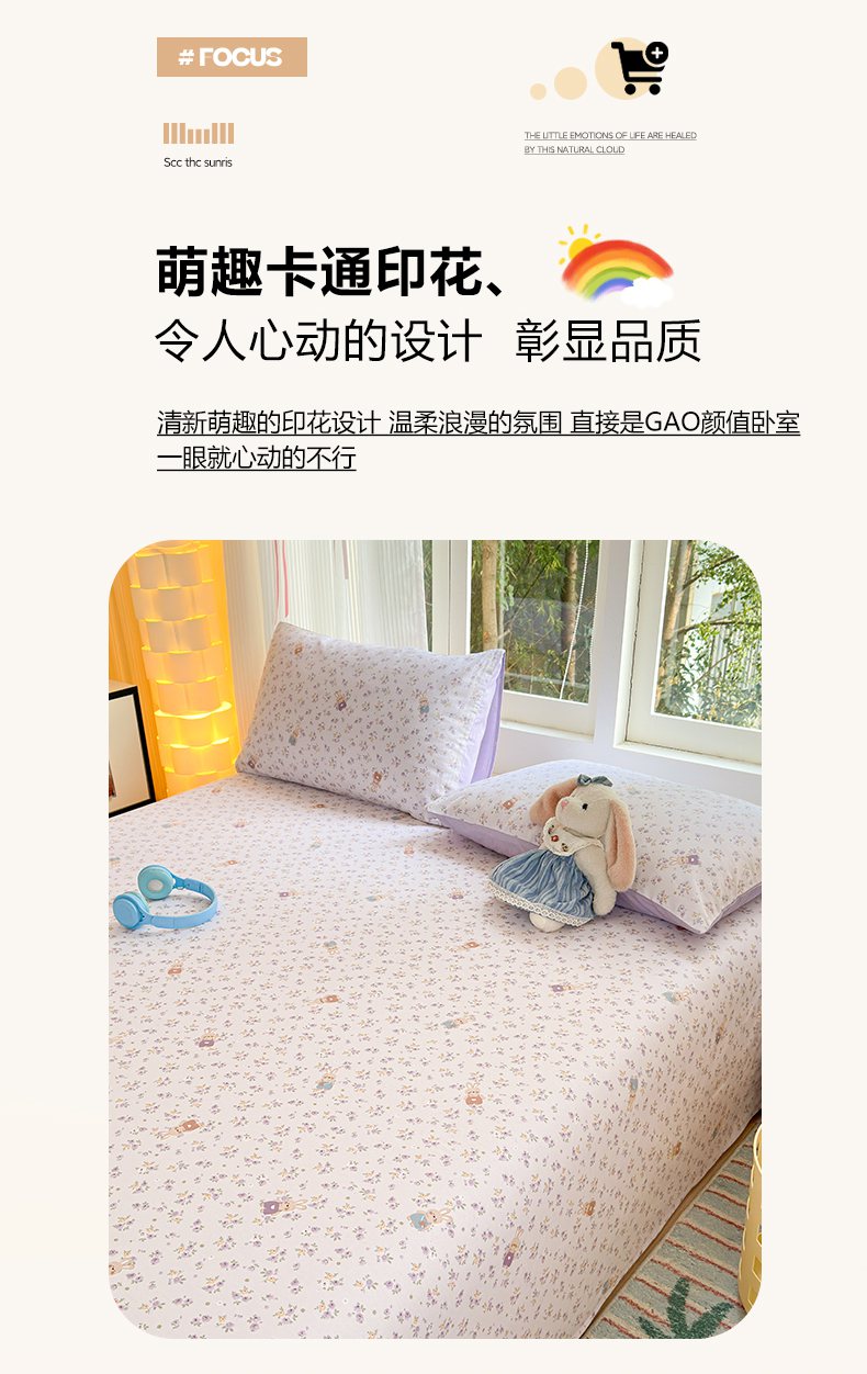 当前位置: 91家纺网 > 商品网购 > 床上用品 > 床单 > 清雅福 2025新款全棉柔软印花系列单床单 乖乖兔