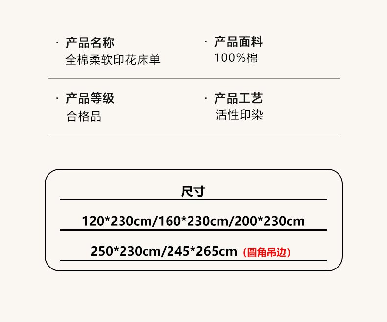 245*265cm单床单(圆角吊边)