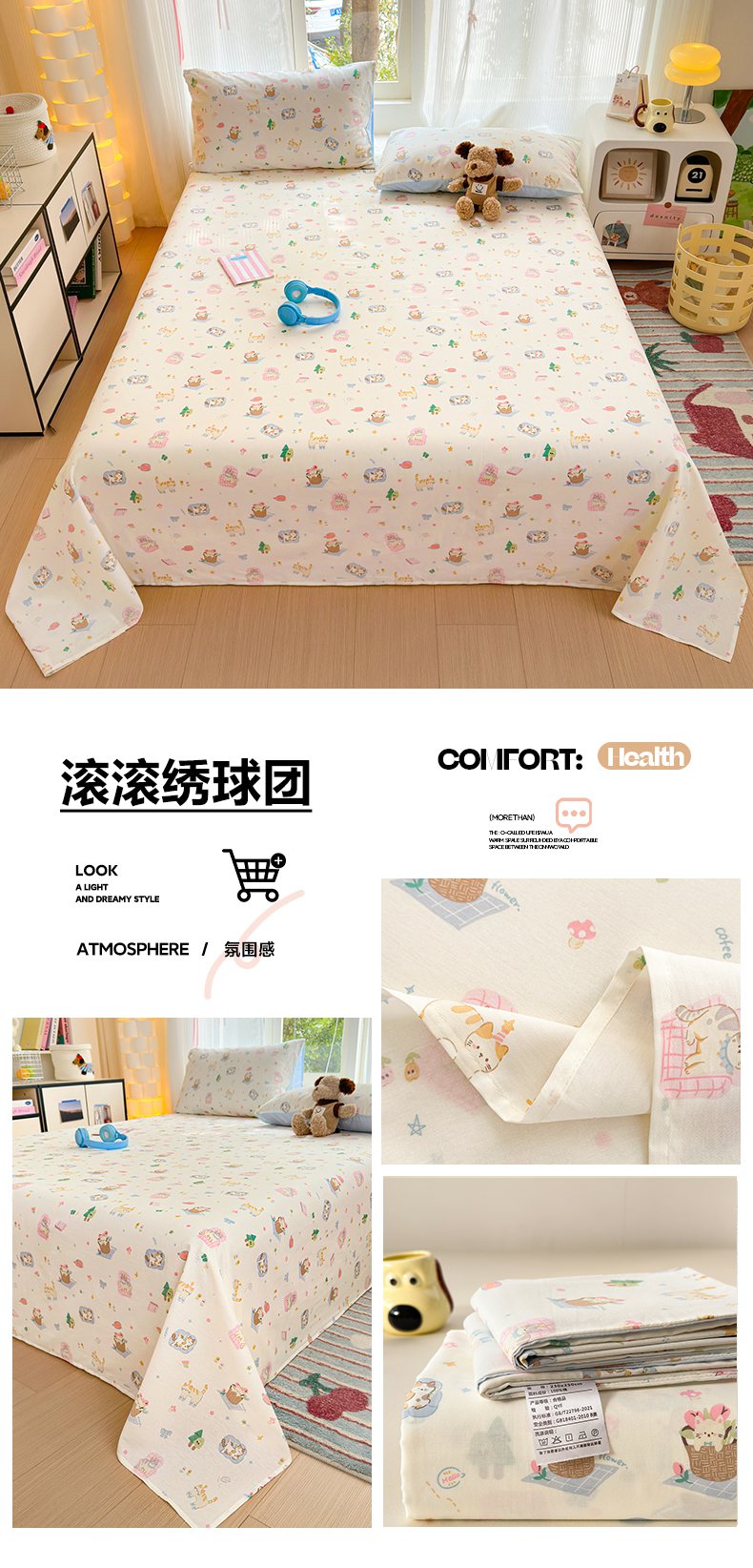 (总)清雅福 2026春夏新款INS小清新40支全棉13372单被套第一批,棒棒糖女孩,春之约定,点点小狗,动物聚会,豆丁小熊,粉心狗,富贵狗,果子象,含羞草,假日小狗