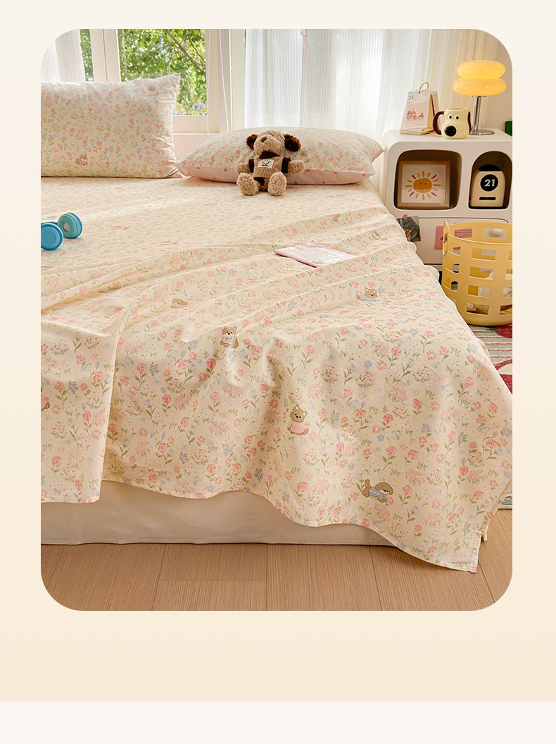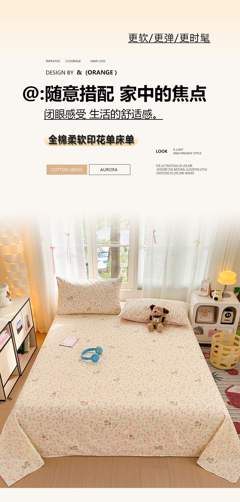 清雅福 2025新款全棉柔软印花系列单床单 甜莓手记-米
