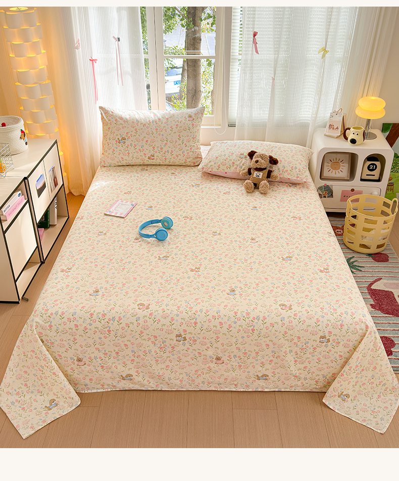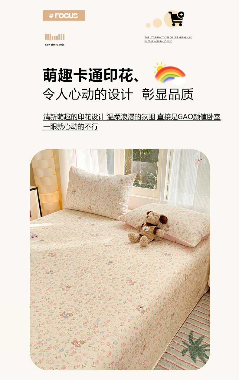 • 91家纺网 家纺一手货源 找家纺 清雅福 2025新款全棉柔软印花系列单床单 甜莓手记-米