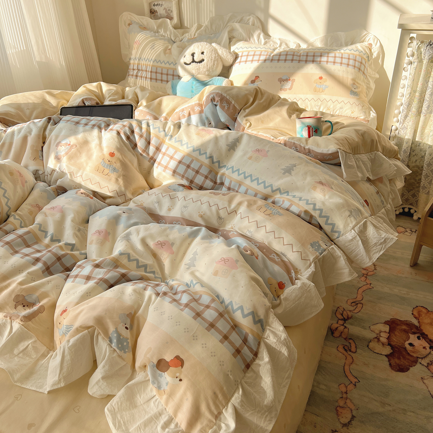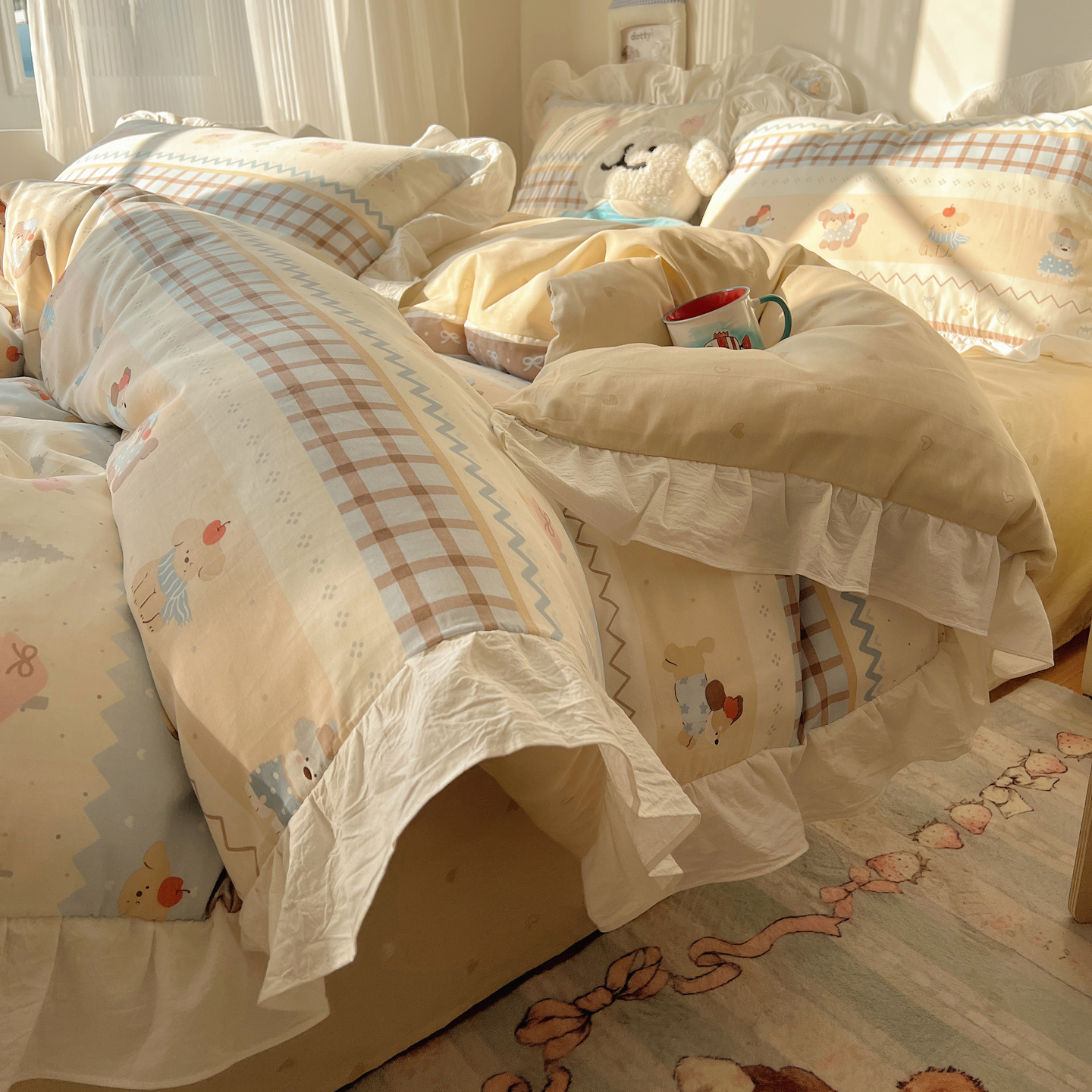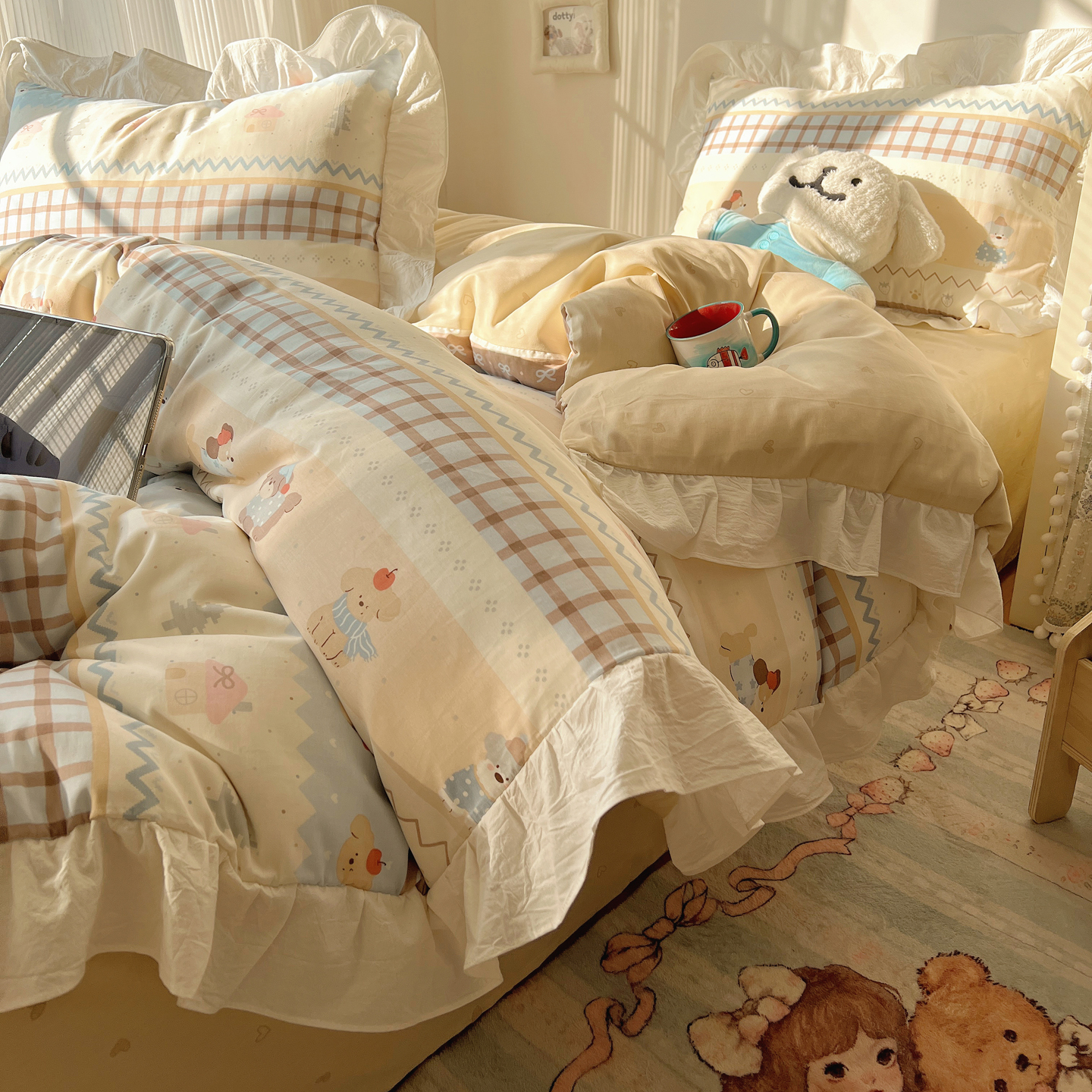 六巷胡同 2026春夏新款韩系花边款卡通40支13070全棉四件套(第二系列)-风格二 花边费尔岛狗狗