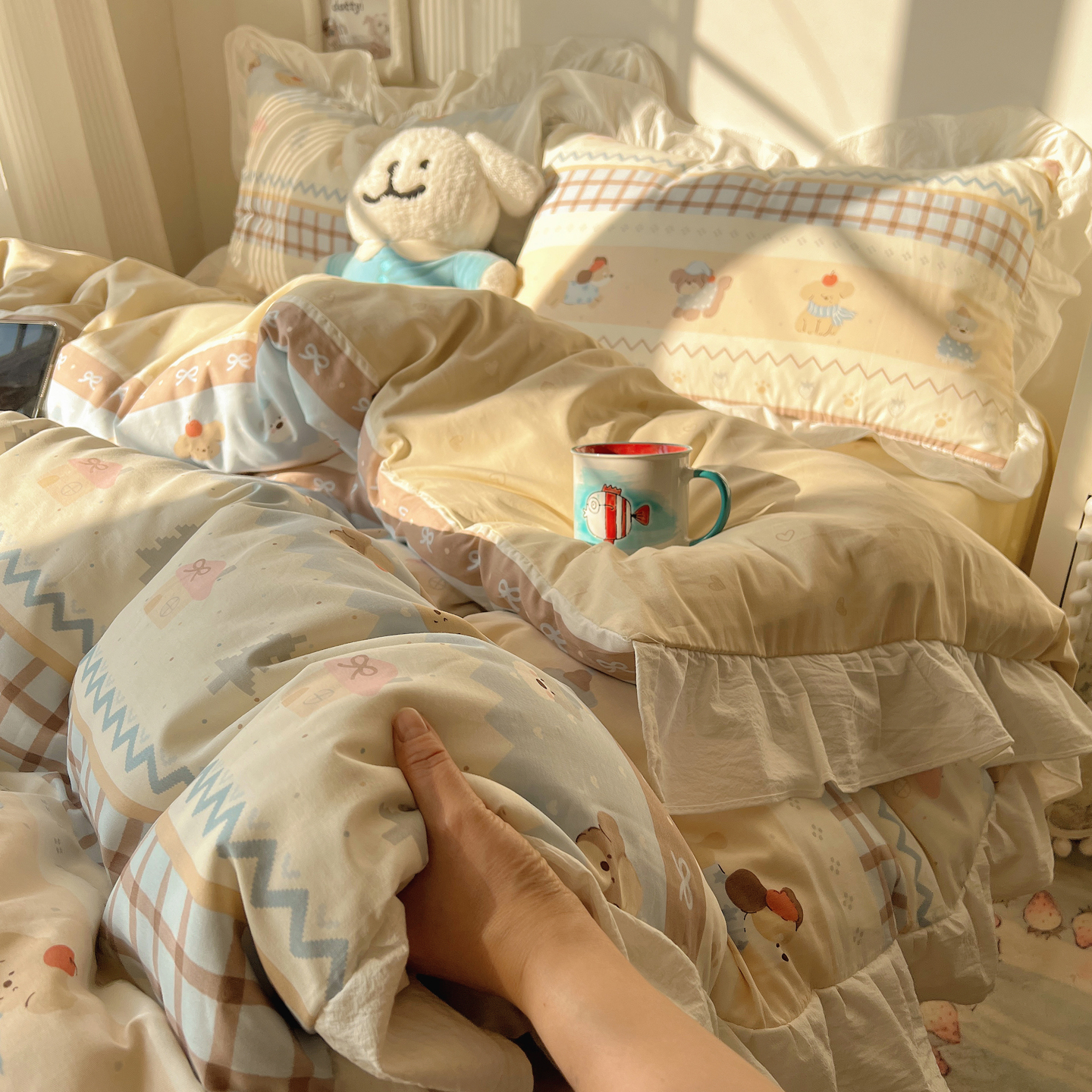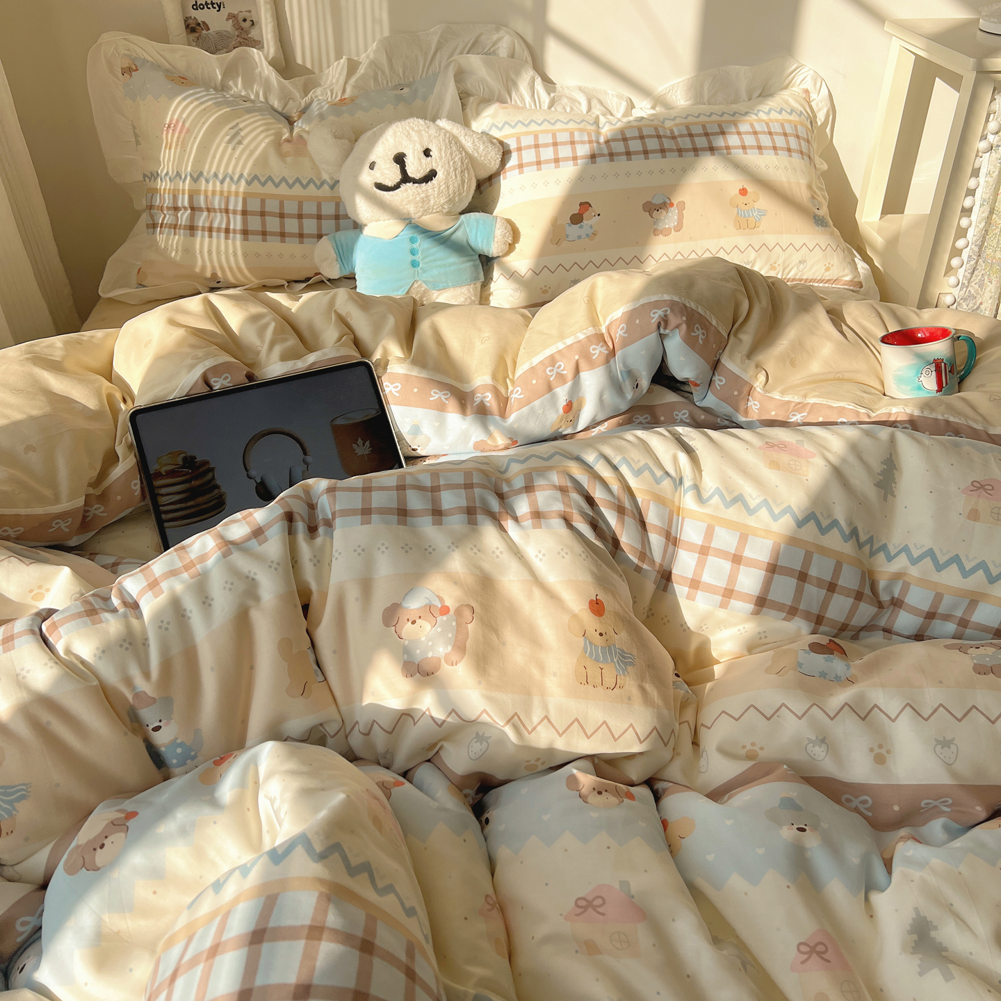 (总)六巷胡同 2025新款INS卡通童趣混搭风全棉四件套第二系,混搭-蛋糕围兜熊,混搭-奶油酣睡熊,混搭-奈斯羞羞狗,混搭-小蓝格甜点,混搭-雪糕哈皮熊,混搭-月亮睡睡熊