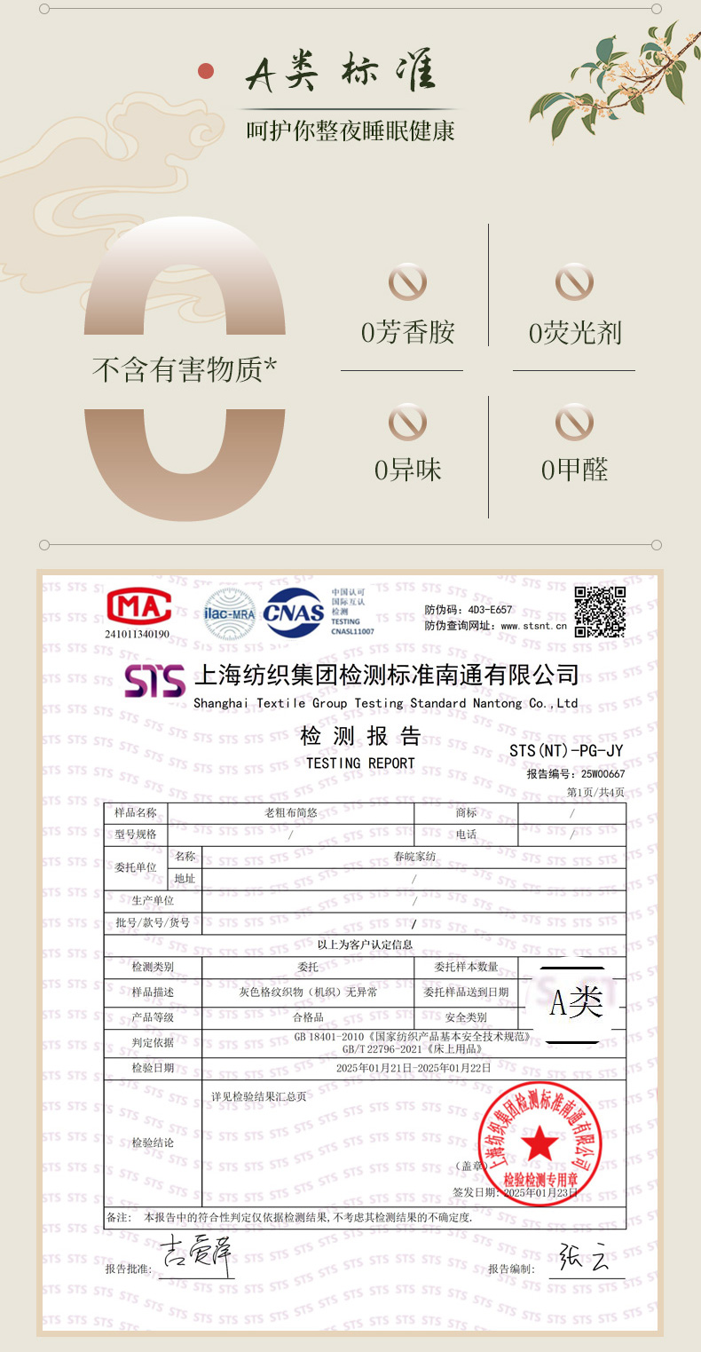 4、通州区市场监管局川姜分局友情提醒:近期针对抗静电,无静电,抗菌防螨,及有关舒适度,百分比的举报高发。为不影响商品正常销售,请各商家高度重视,自检自查及时整改,谢谢配合!