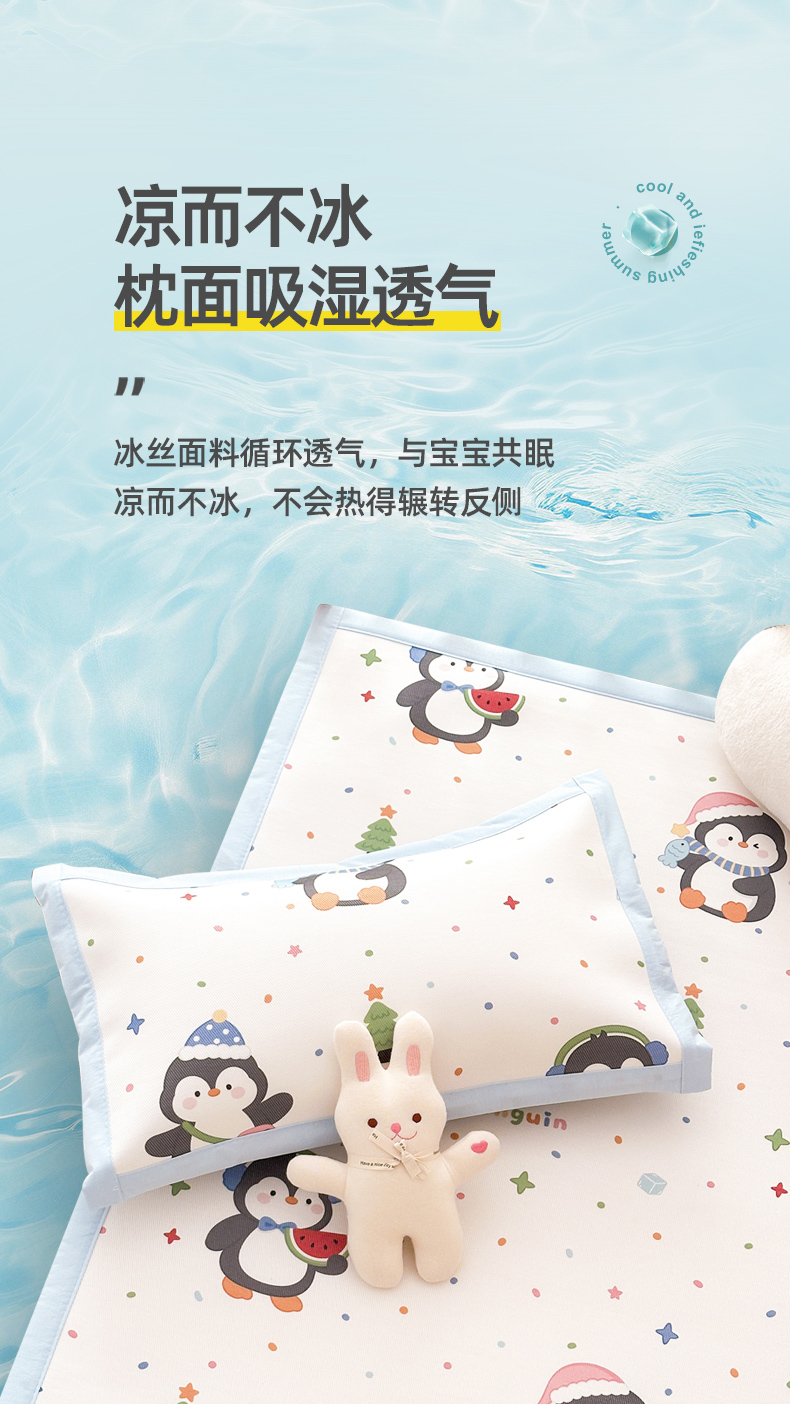 商品名称:嗨生活 2026新款冰丝枕套儿童枕套幼儿园单枕套枕套单件 波点企鹅