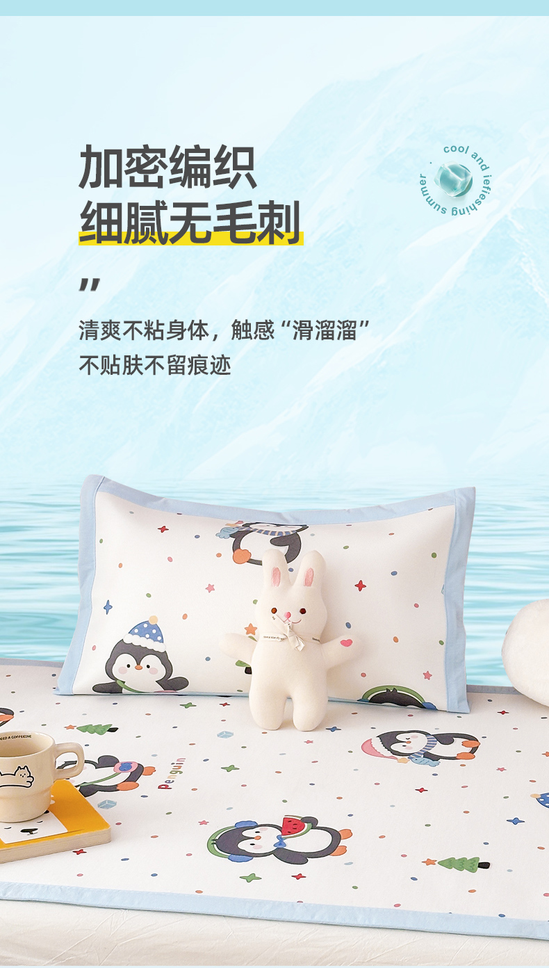 (总)嗨生活 2026新款600D冰丝凉席儿童婴儿床凉席幼儿园凉席拼床凉席席子,波点企鹅,粉红小兔,公主女孩,可爱美人鱼,可爱奶龙,恐龙世界,快乐男孩,西瓜女孩,宇宙超人