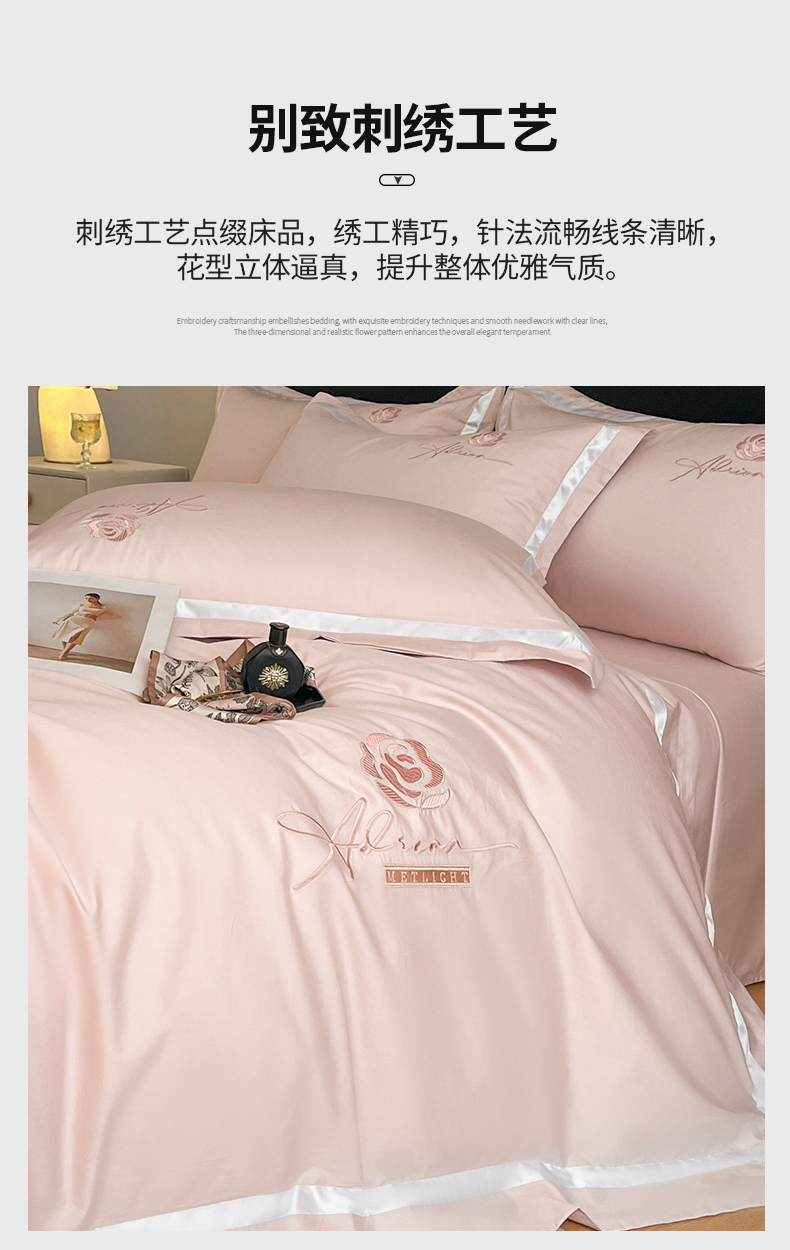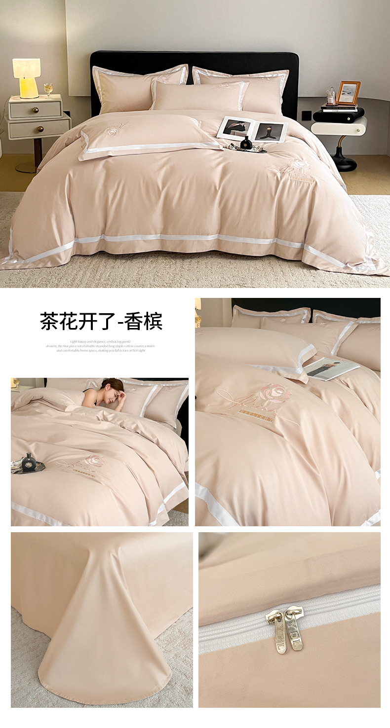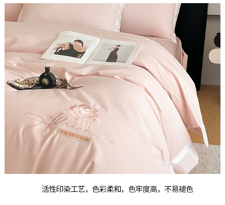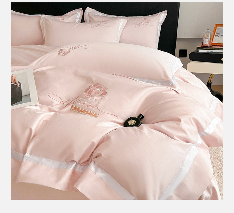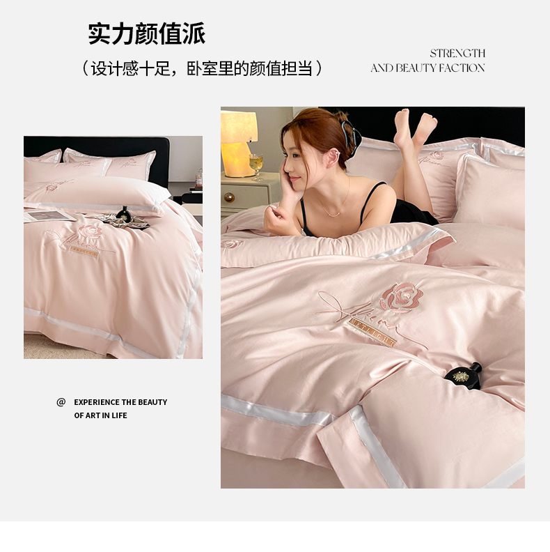 (总)新方向 【控价 提供买家秀】2026新款刺绣50s双股全棉贡缎长绒棉四件套-自信(控价 标准328元 加大348元),自信-蔷薇粉,自信-香槟,自信-星月蓝