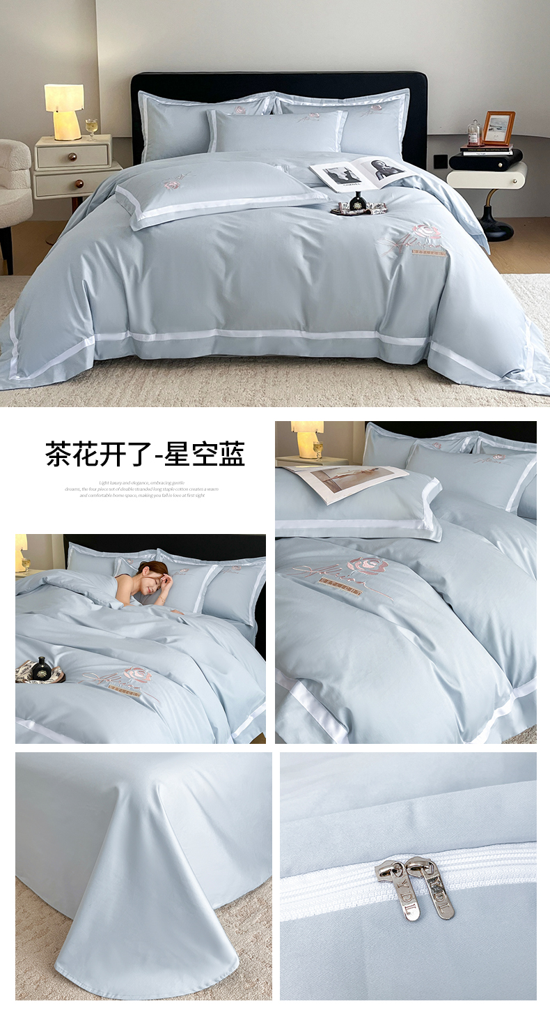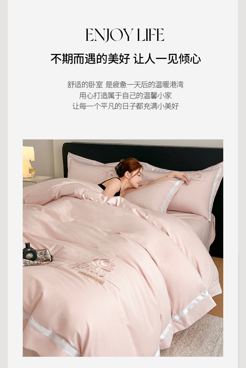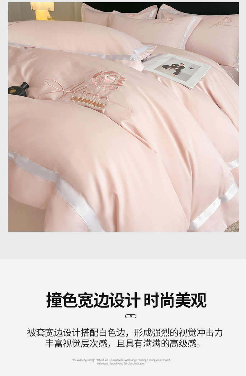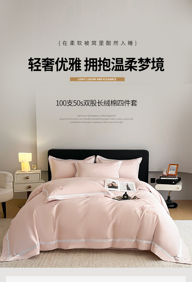 (总)新方向 【控价 提供买家秀】2026新款刺绣50s双股全棉贡缎长绒棉四件套-自信(控价 标准328元 加大348元),自信-蔷薇粉,自信-香槟,自信-星月蓝