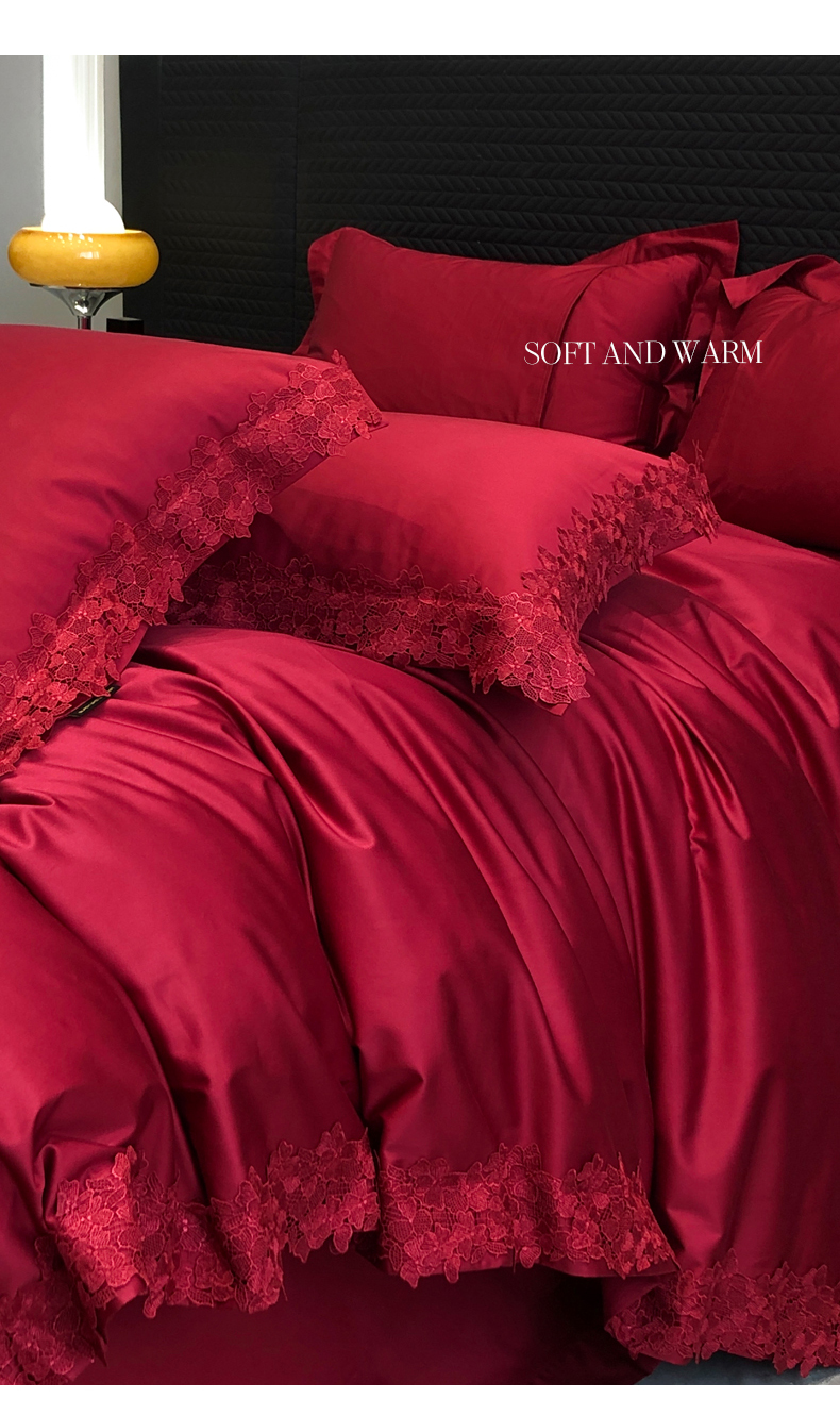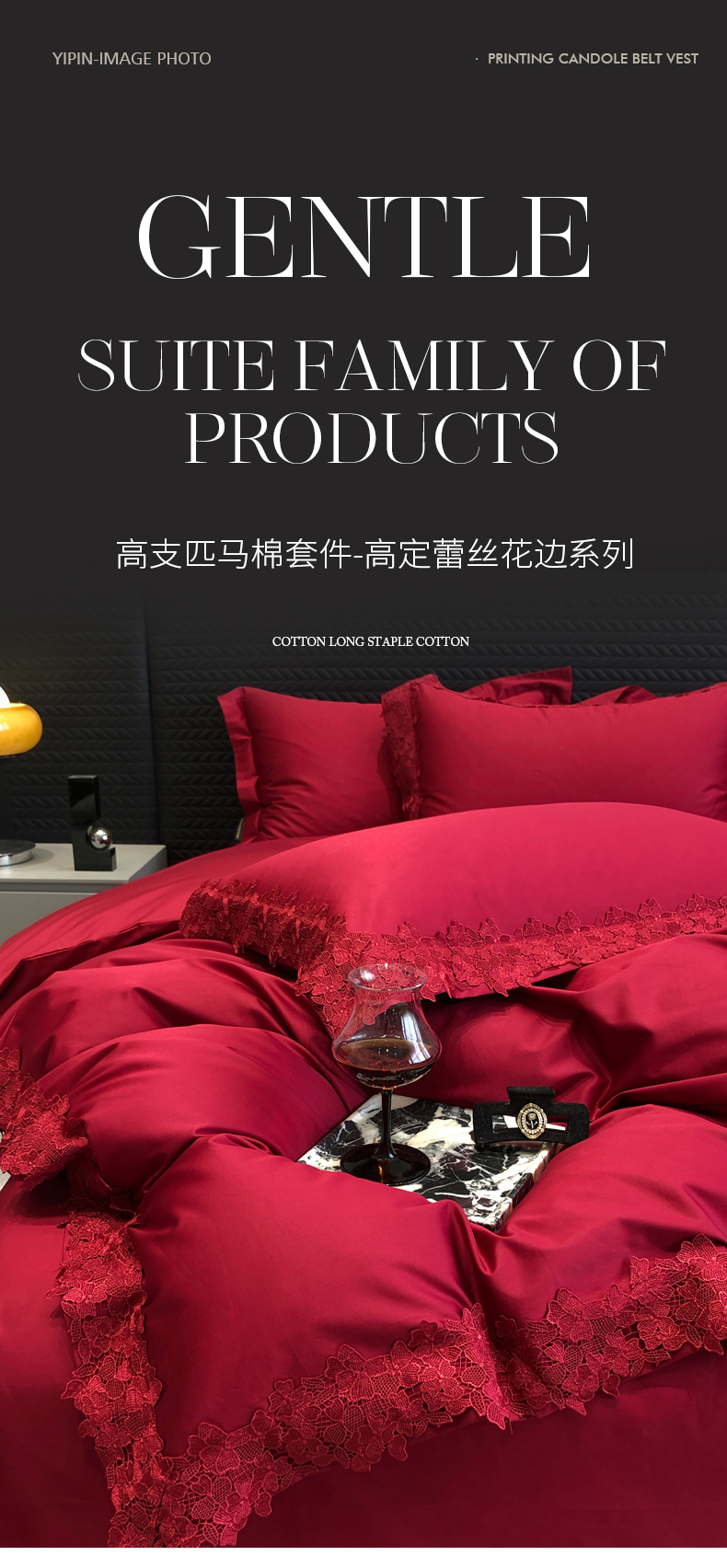商品名称:黑白森林 2026新款匹马棉高定蕾丝大红系列 罗莎