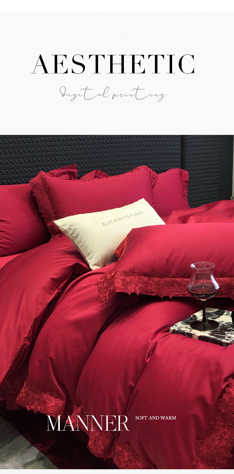 (总)黑白森林2024款 80X80S高支天丝棉四件套镂空蕾丝花边天丝全棉,尚美-晨夕粉,尚美-古象白,尚美-青砂绿,尚美-银雪灰