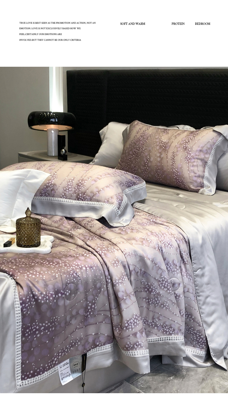 当前位置: 91家纺网 > 商品网购 > 床品套件 > 四件套 > 夏被四件套 > 黑白森林 2026新款天丝印花夏被四件套系列 缦禾-紫