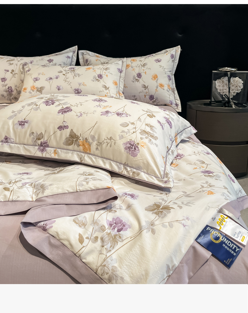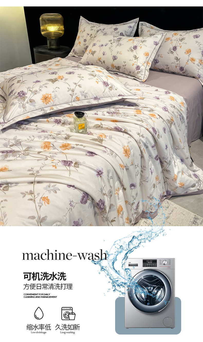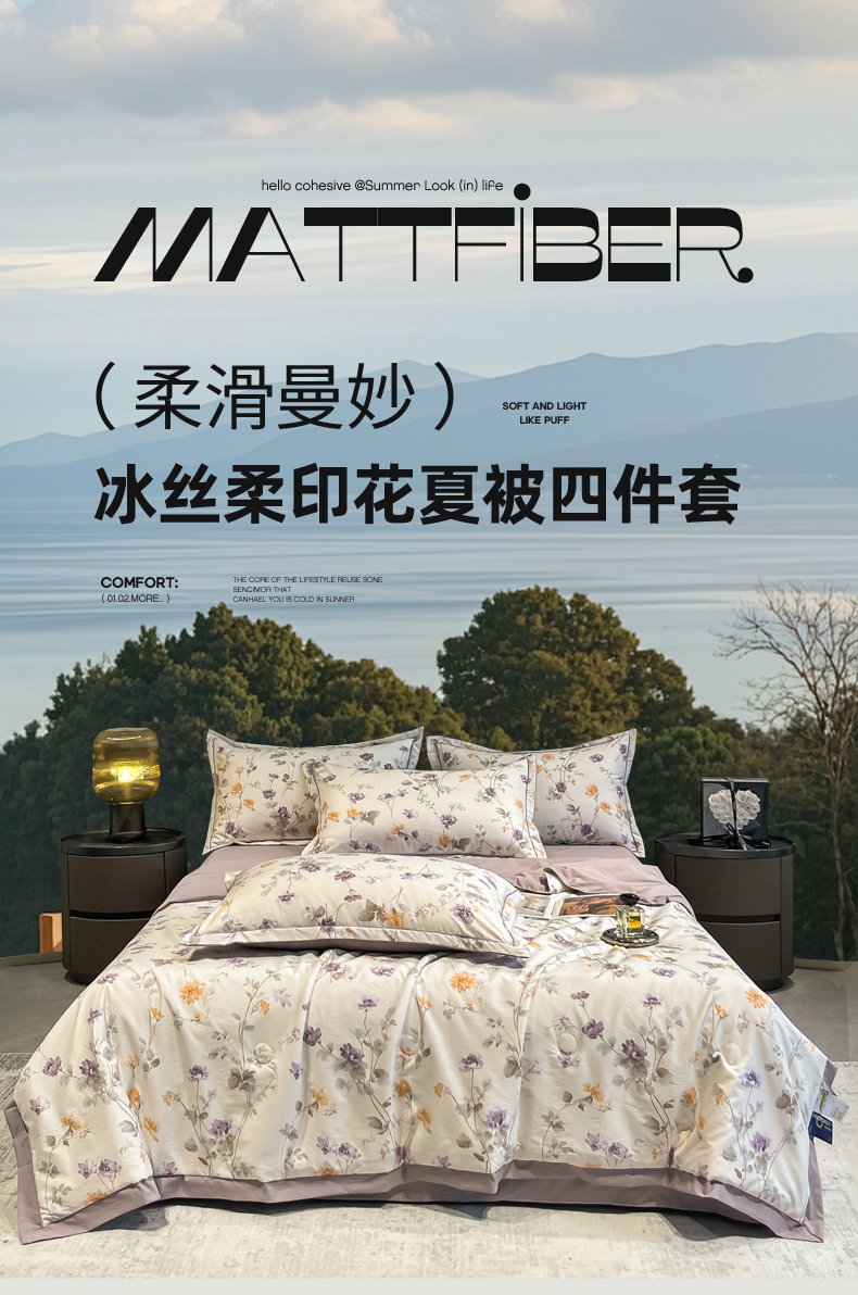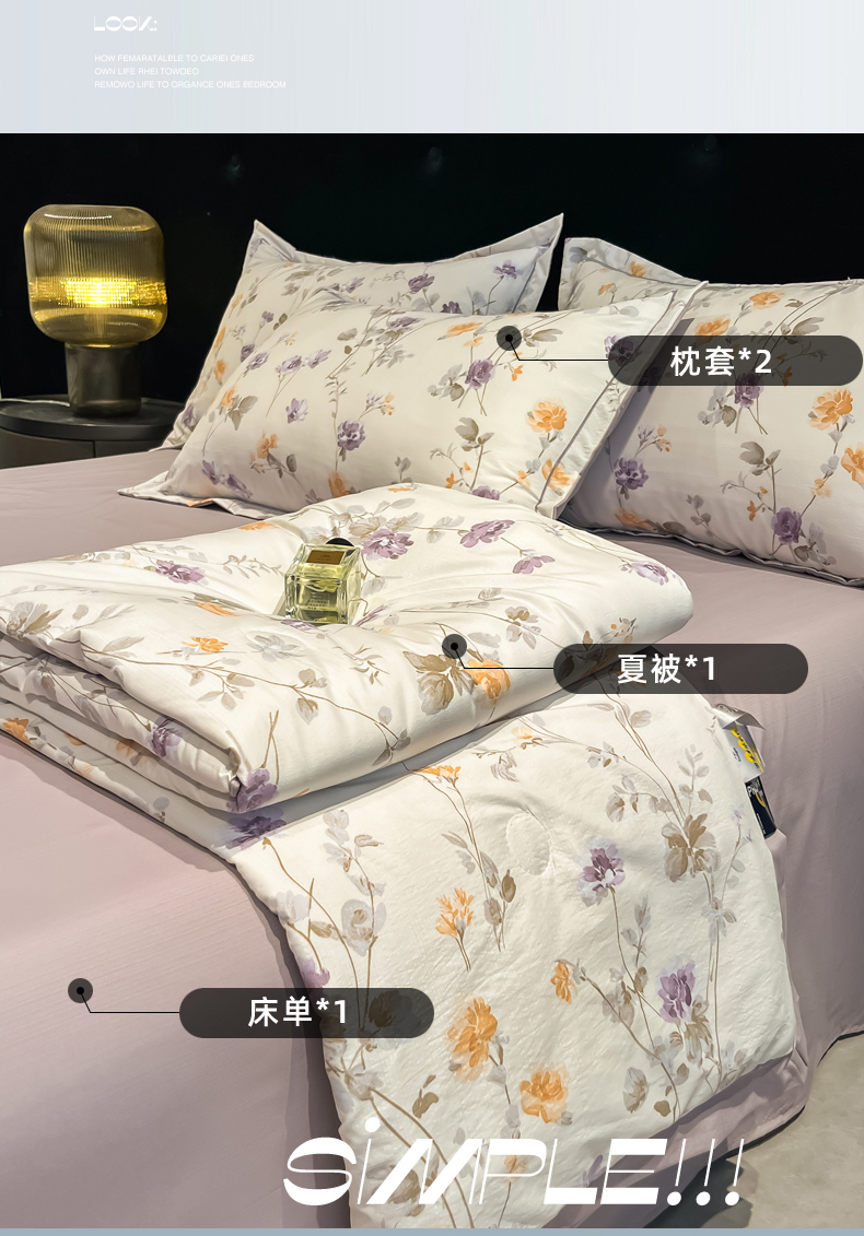 商品名称:金梦拉家纺 2026新款凉感天丝竹节纱大宽边一字绣夏被空调被夏凉被四件套 幻境紫