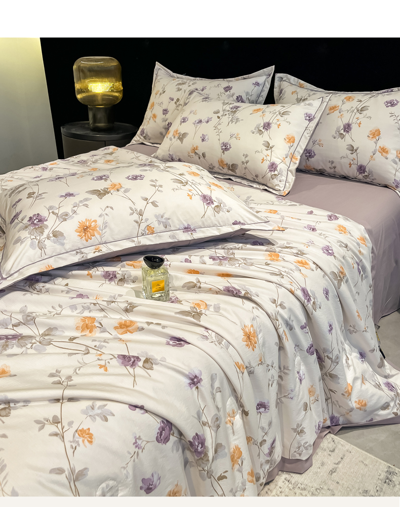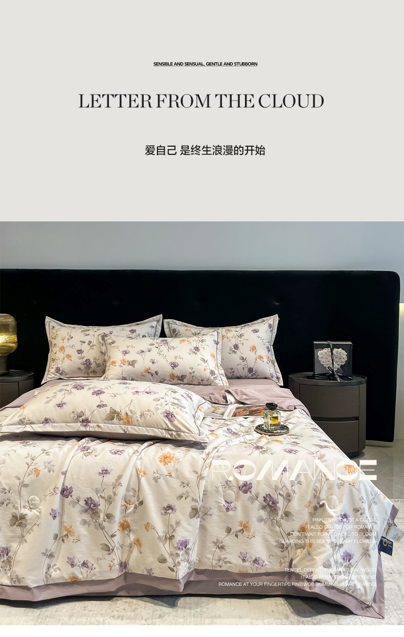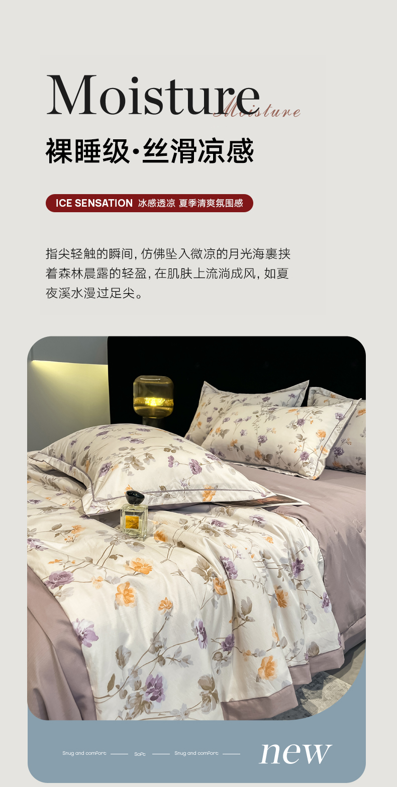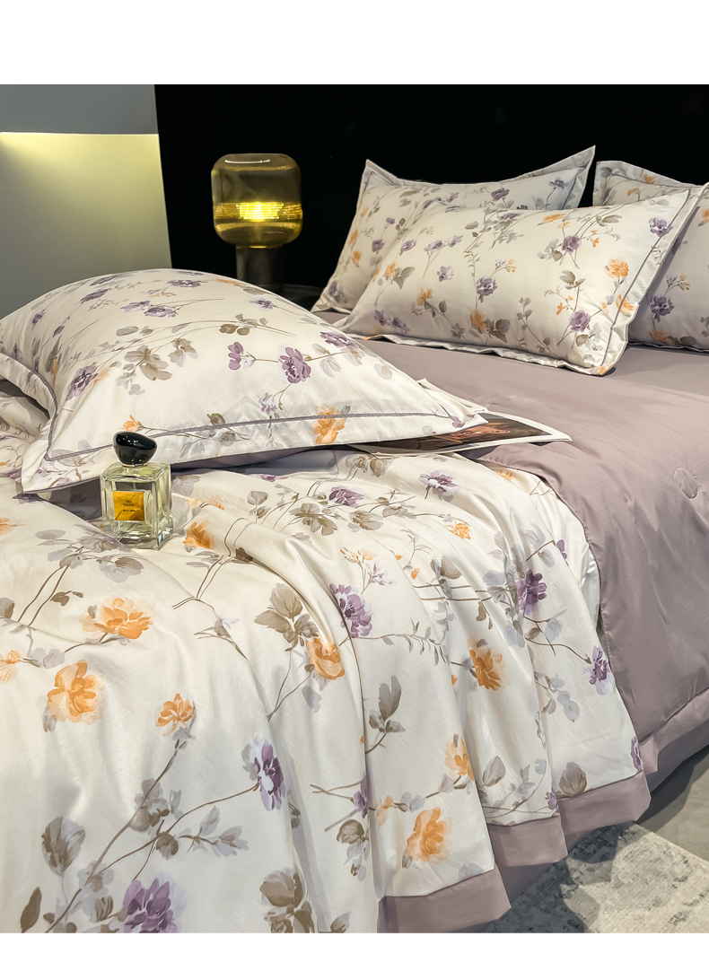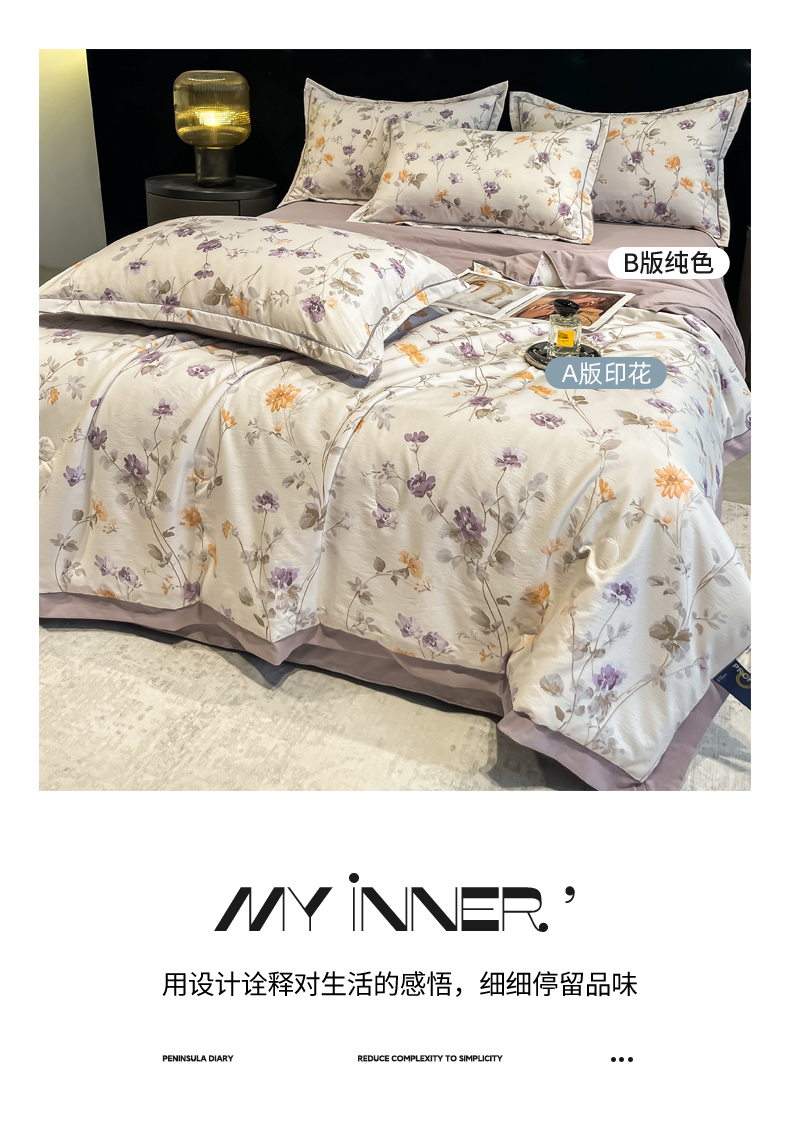 金梦拉家纺 2026新款凉感天丝竹节纱大宽边一字绣夏被空调被夏凉被四件套 幻境紫