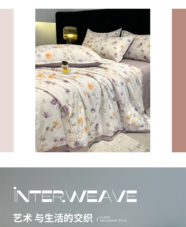 (总)金梦拉家纺 2025新款秋冬新款双层纱四件套田园风印花,小南瓜,哈基米,浪漫紫芙,梦幻星河,陌上花开,奶油波点,桃喜微风,小旺仔,紫芙香,紫曦