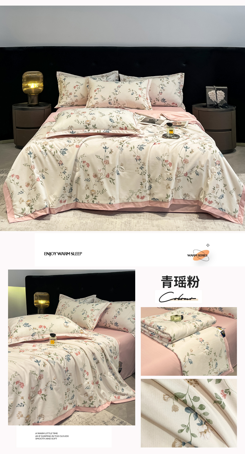 (总)金梦拉家纺 2026新款凉感天丝竹节纱大宽边一字绣夏被空调被夏凉被四件套,初妍,繁希紫,风语花絮,欢乐熊宝,幻境紫,流苏粉,绿韵春晓,木槿,木马蓝,茜茜公主,青棠绿,青瑶粉,童梦国