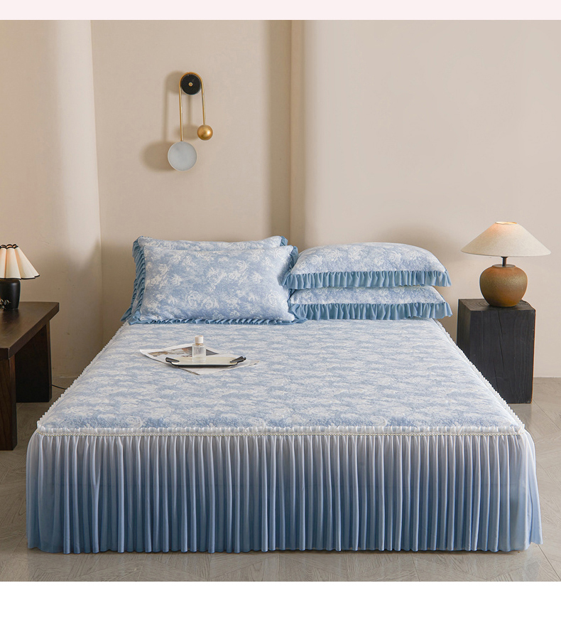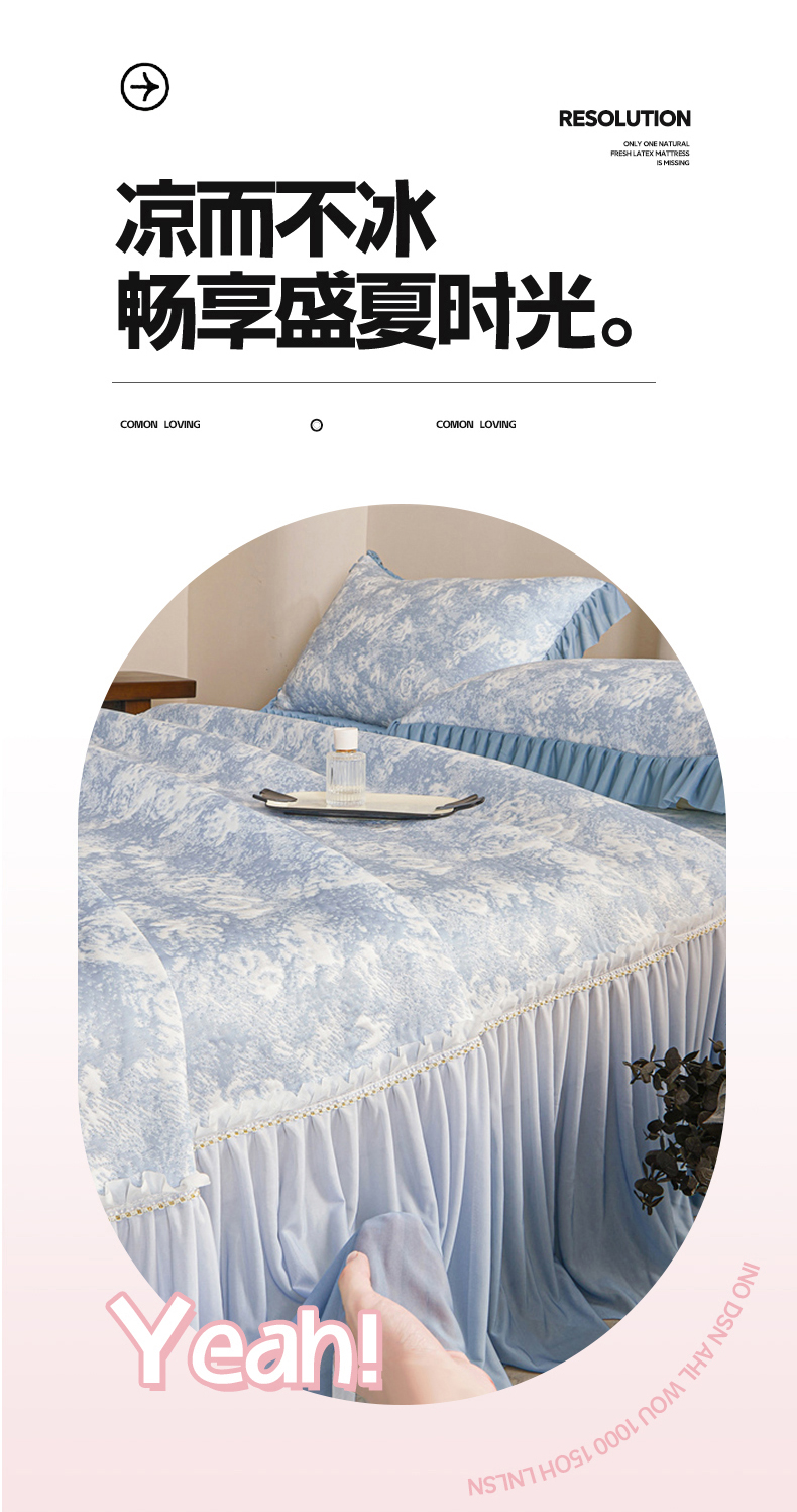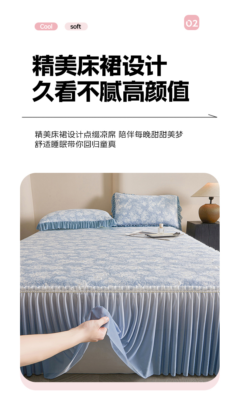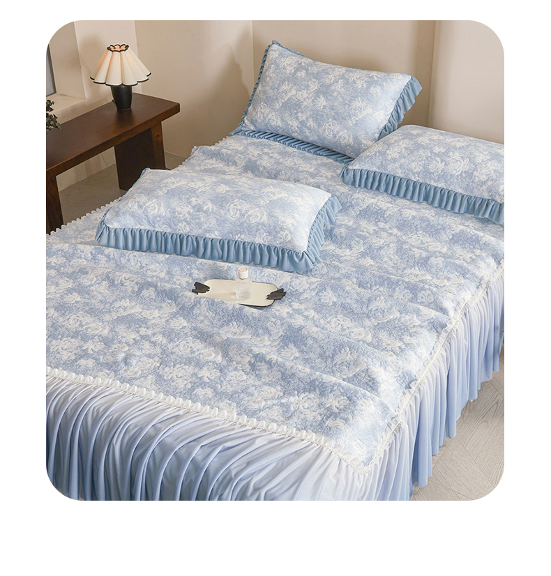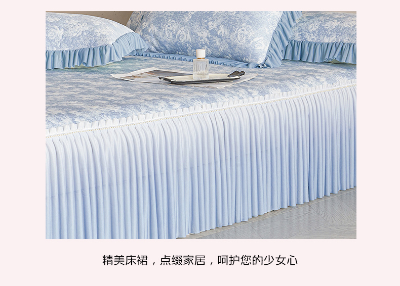 商品名称:喜梦缘家纺 2026新款PE冰豆豆冰丝床裙款凉席席子-玫瑰系列 蓝玫瑰