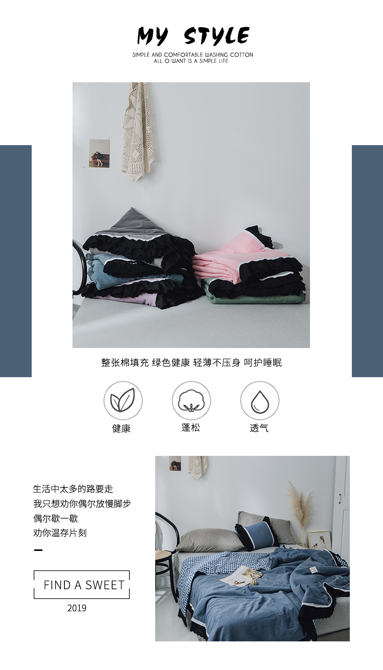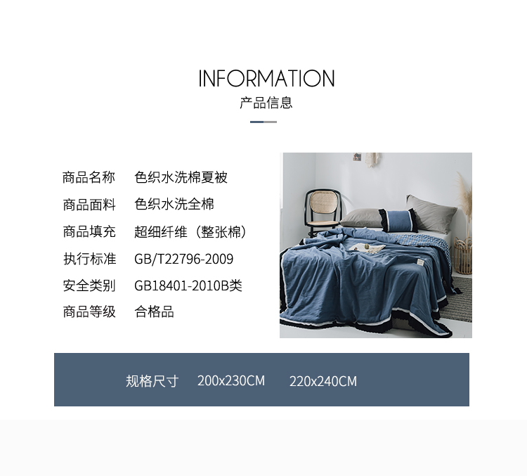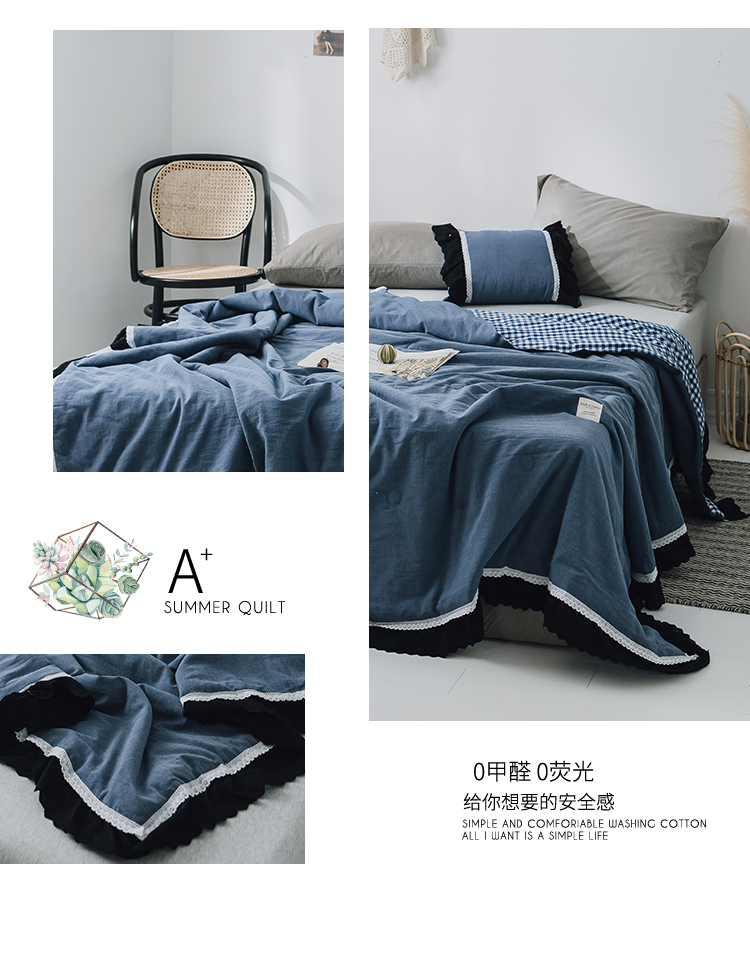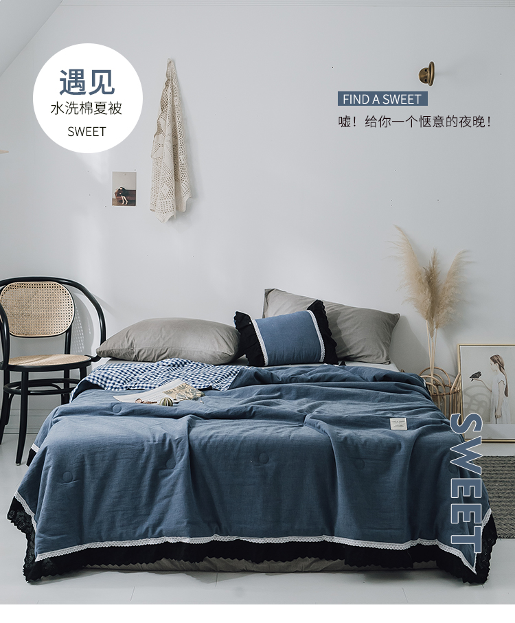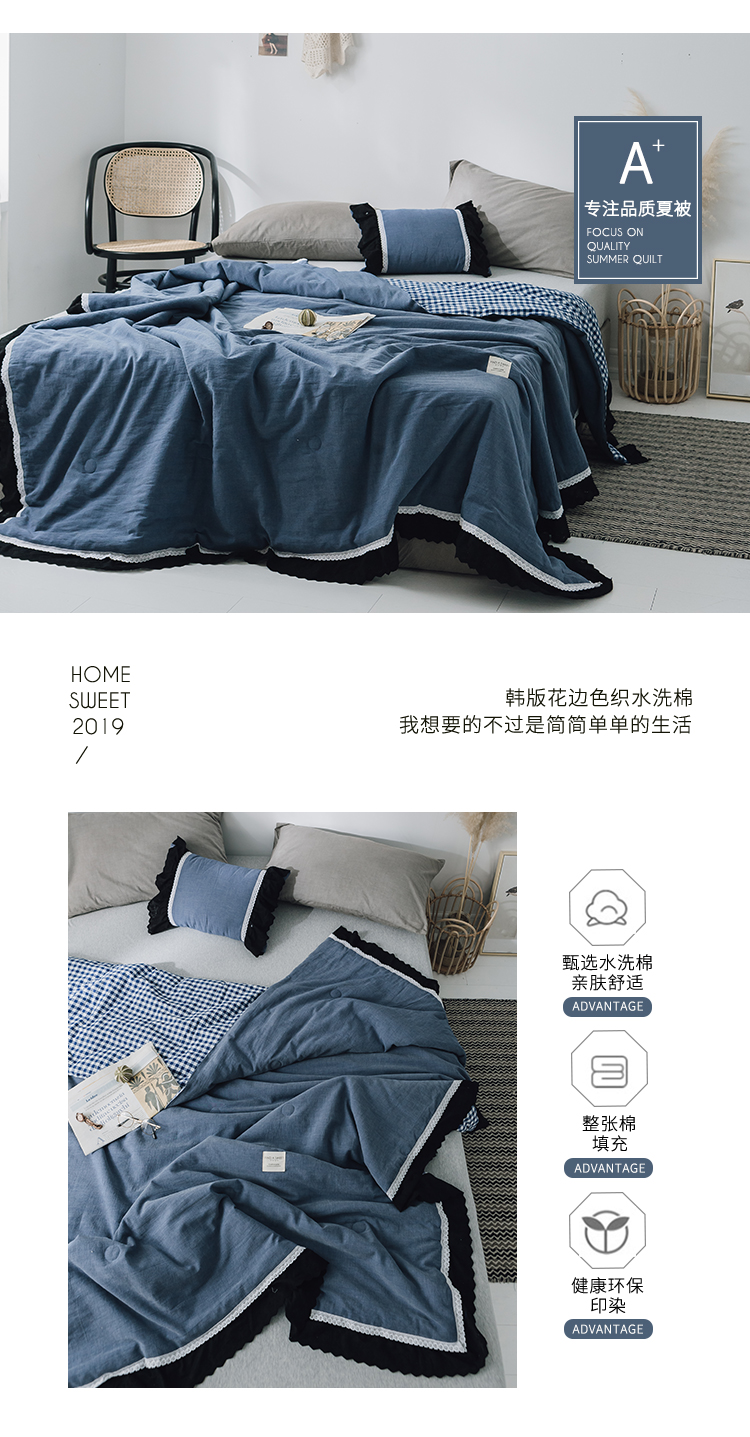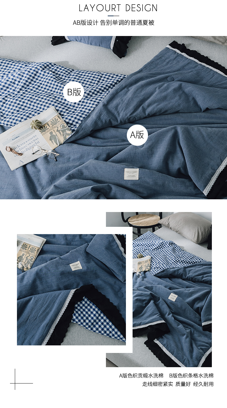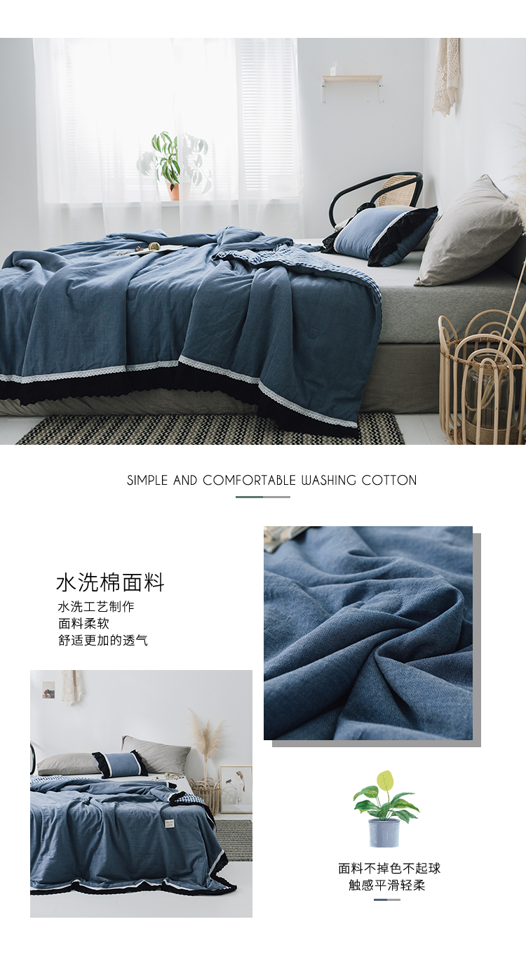 商品名称:润缦 2019新款色织贡缎水洗棉夏被牛仔蓝