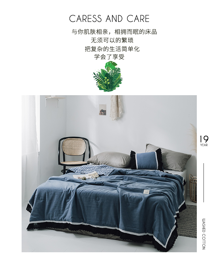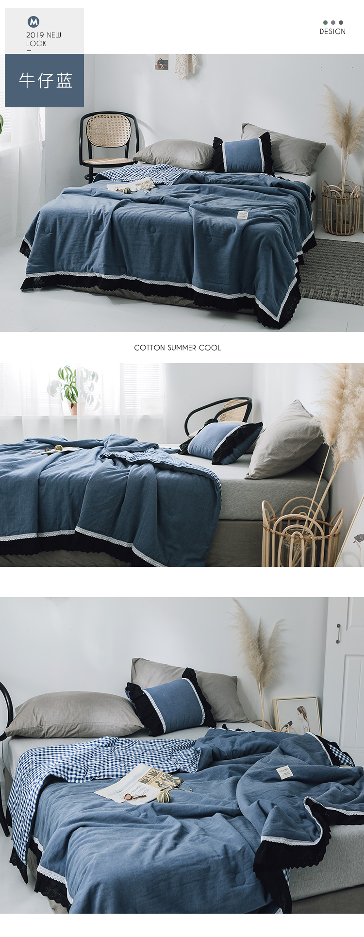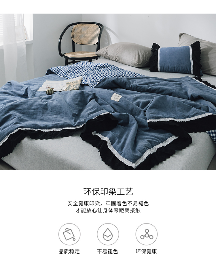 润缦 2019新款色织贡缎水洗棉夏被牛仔蓝