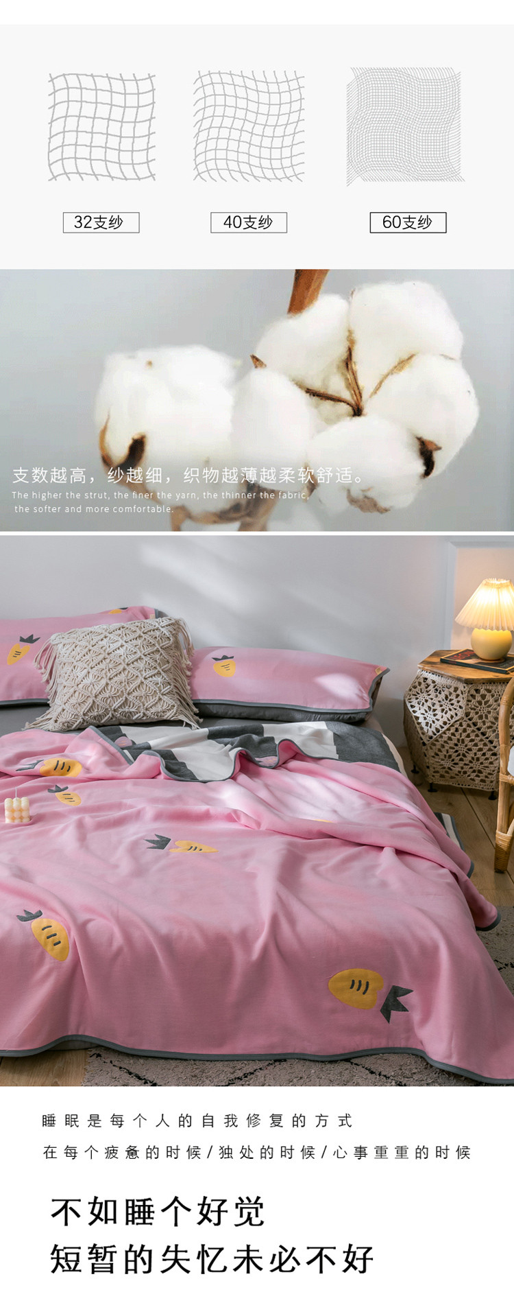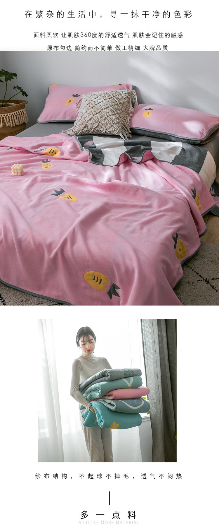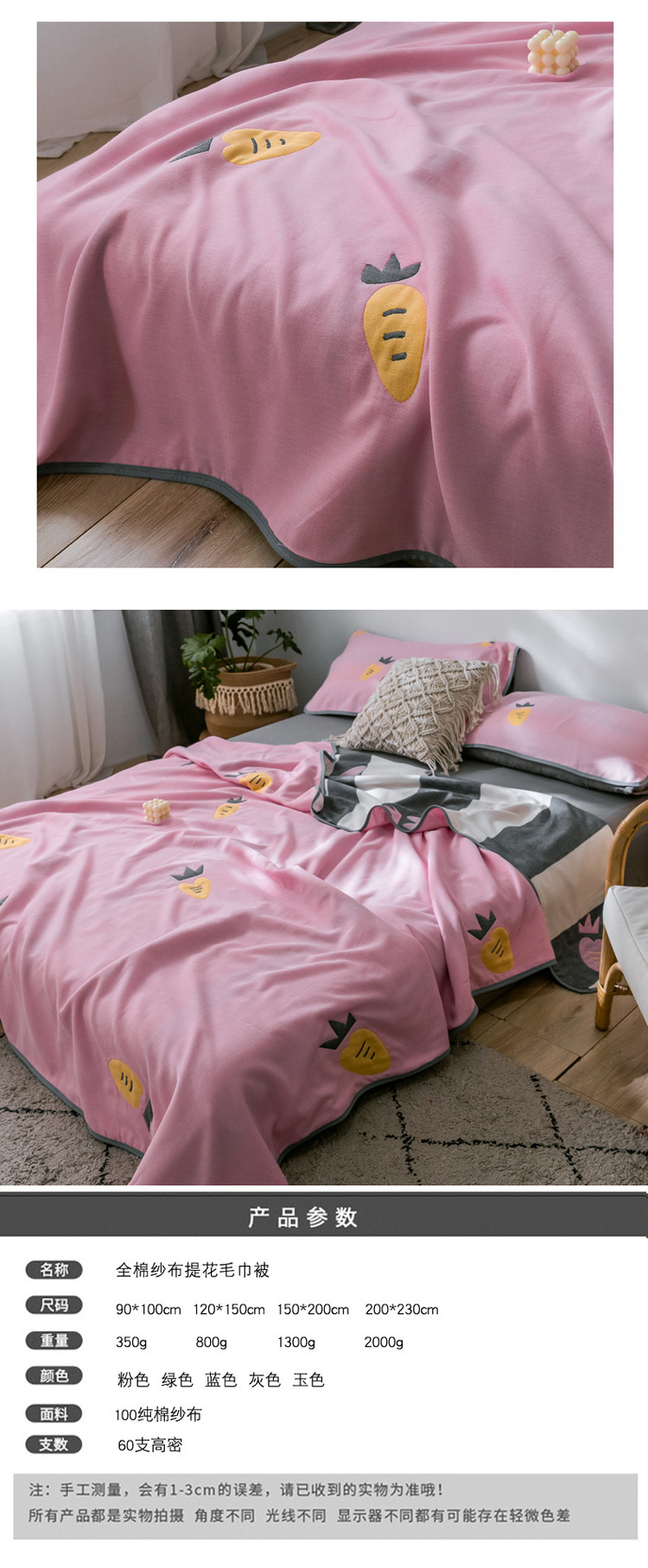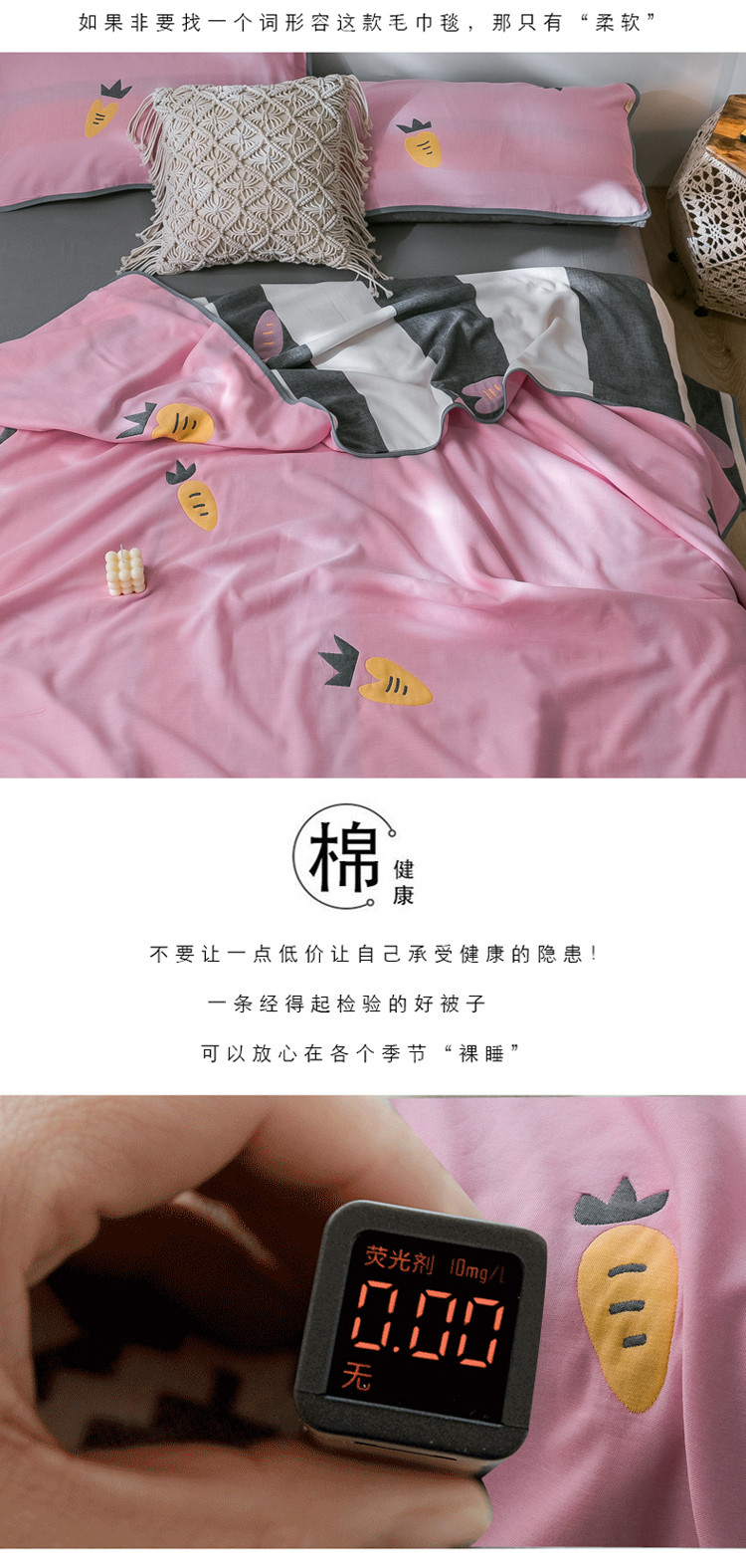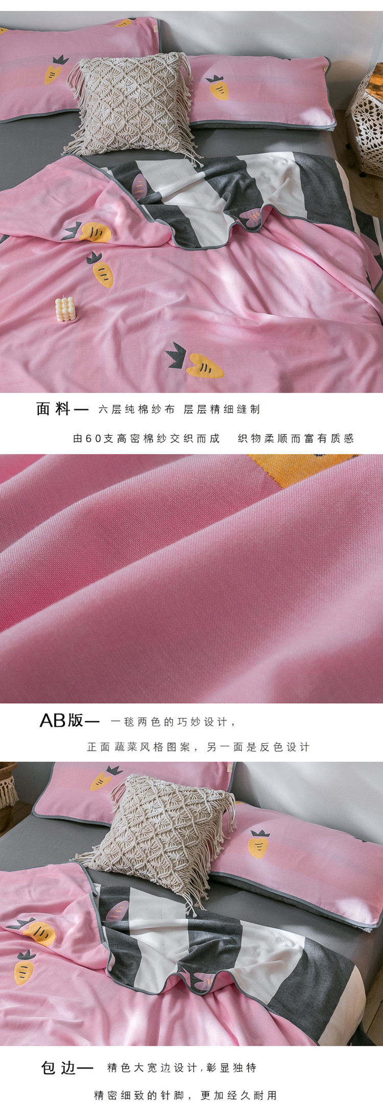 商品名称:朴尔2020新款时尚六层全棉纱布盖毯夏季毛巾被农场胡萝卜-粉
