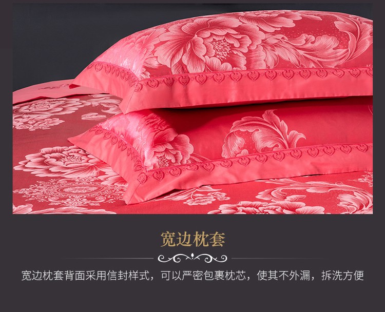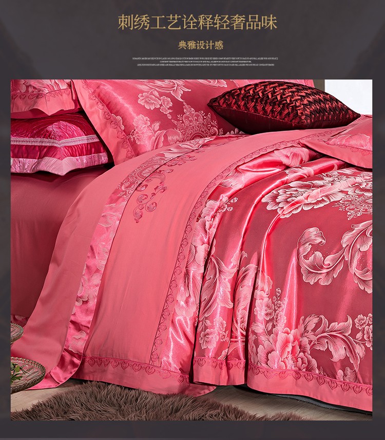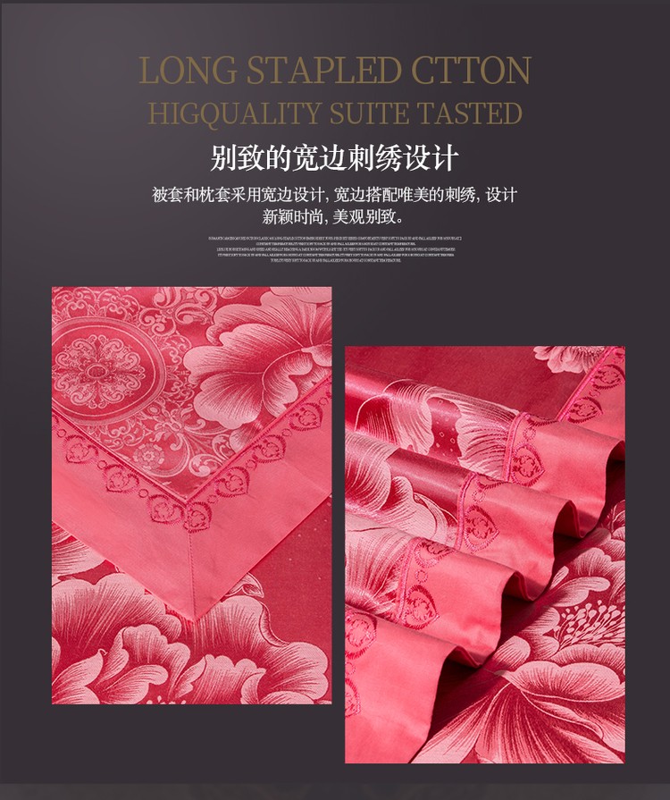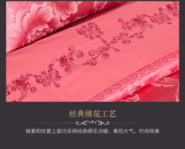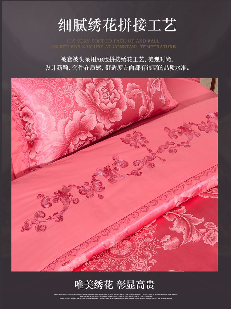 柔觉家纺 天丝刺绣贡缎提花全棉四件套,雅普诺-红灰