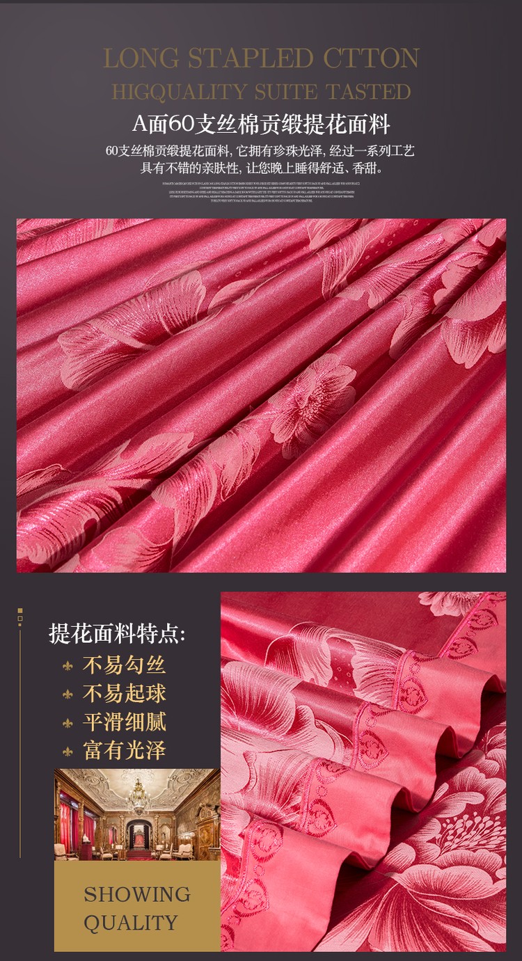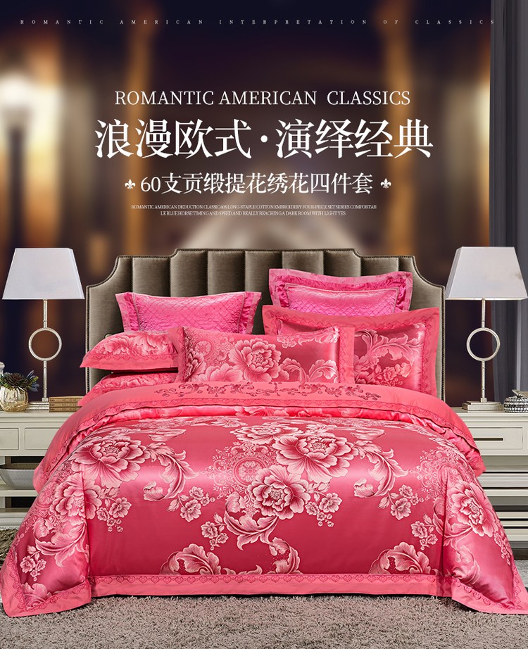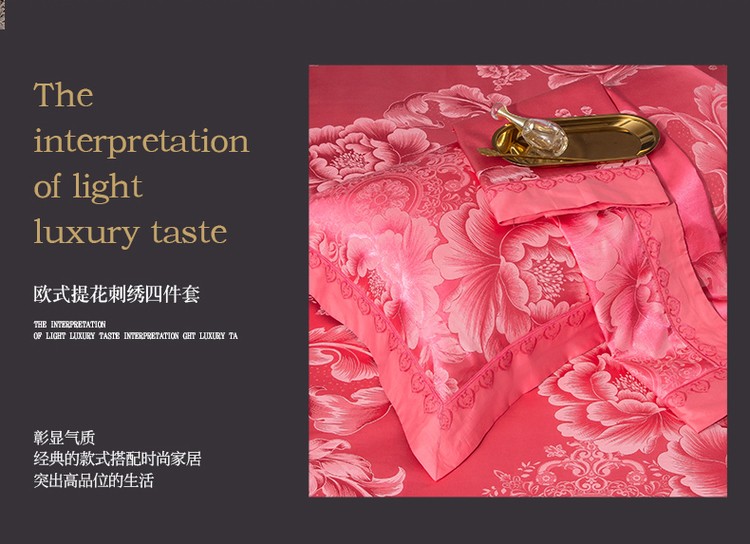 (总)柔觉家纺 天丝刺绣贡缎提花全棉四件套,艾利斯-兰金,宝琪-藕荷玉,罗娜恋歌-粉,奥威丽雅-蓝,奥薇丽雅(豆沙),龙凤交鸣(大红),罗娜恋歌-红玉,情恋花语(大红),罗兰庄园-靛蓝,莫奈情怀-蓝金,叶语浪漫-浅紫,约瑟情调-灰金,约瑟情调-魅紫,雅普诺-卡兰,小憩-雪青,科西利亚-金色,雅普诺-红灰,水汐-绸缎兰