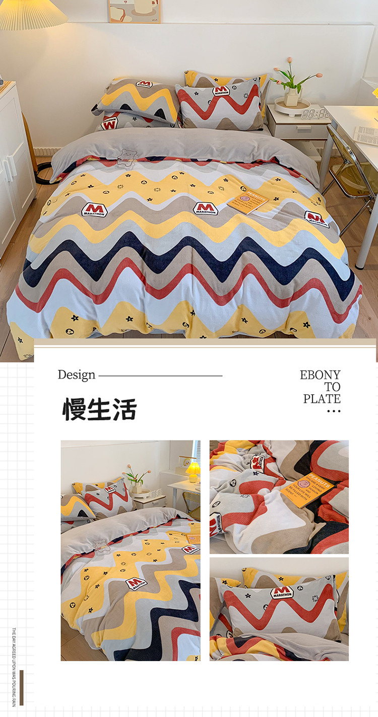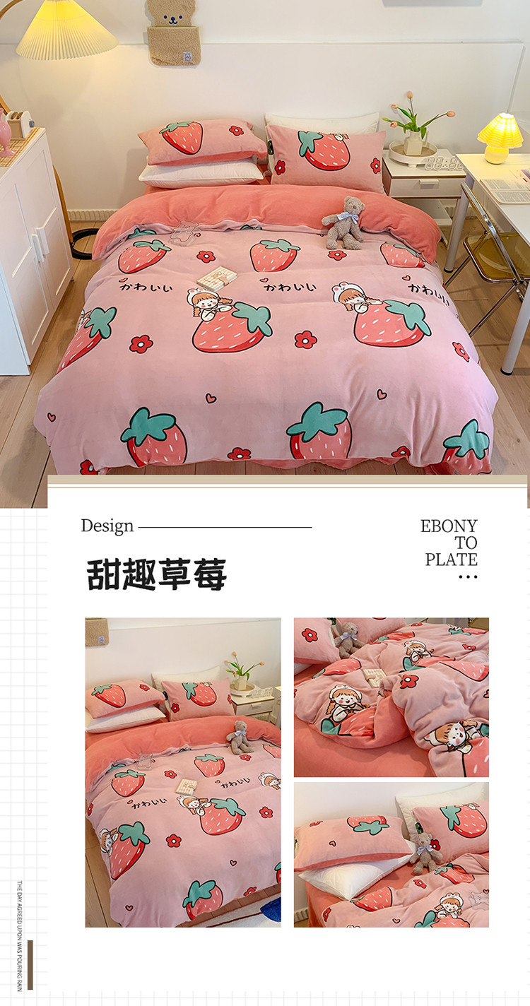 (总)澳萝拉2021高克重卡通清新牛奶绒四件套水晶法莱绒