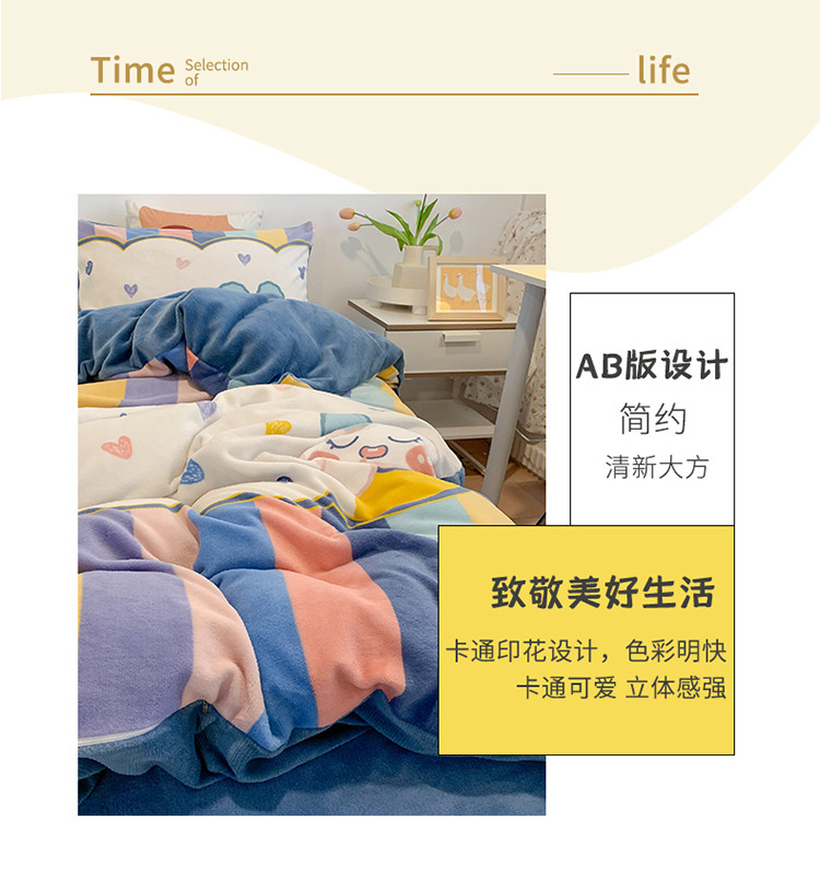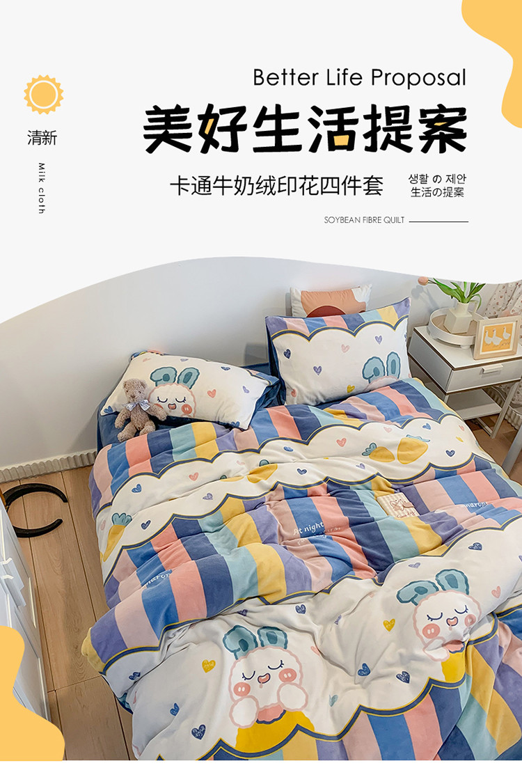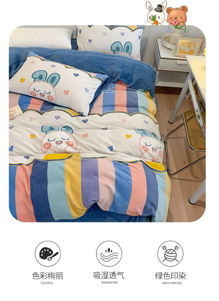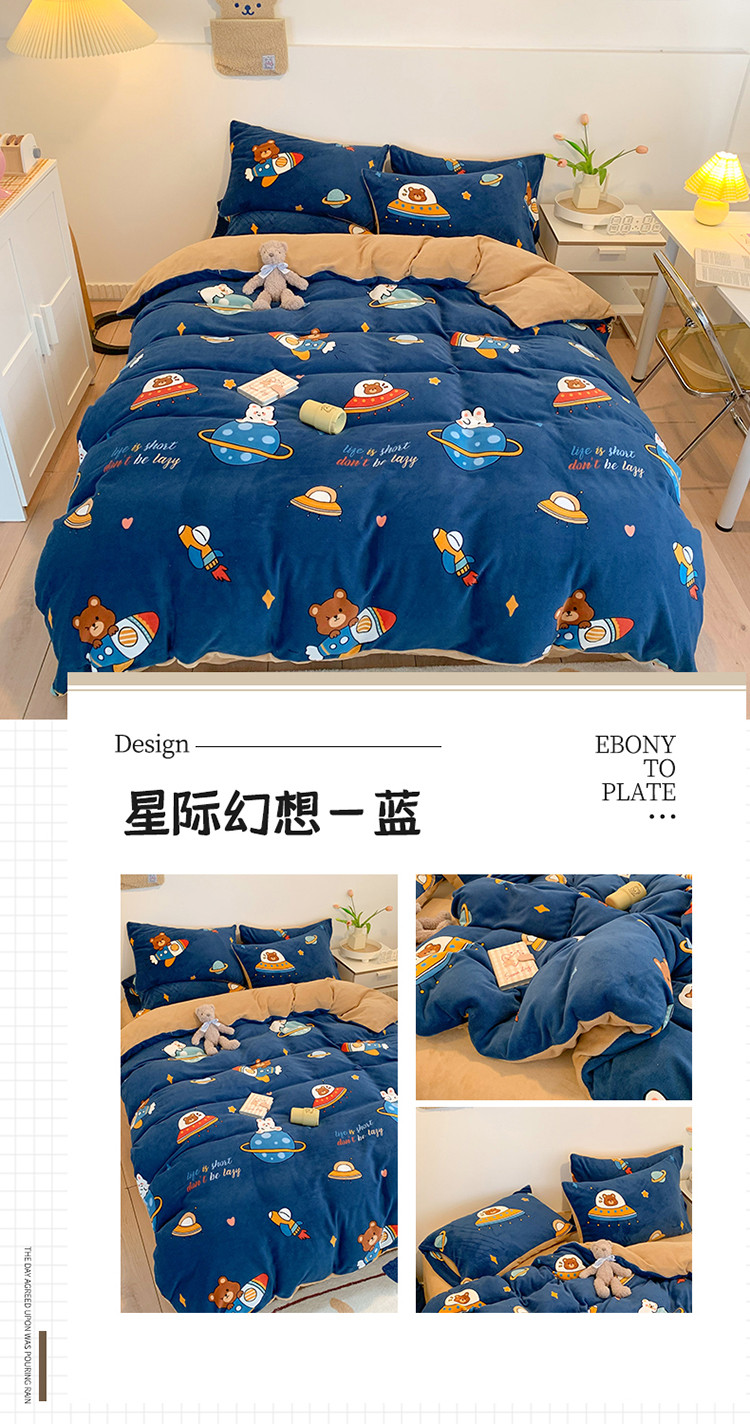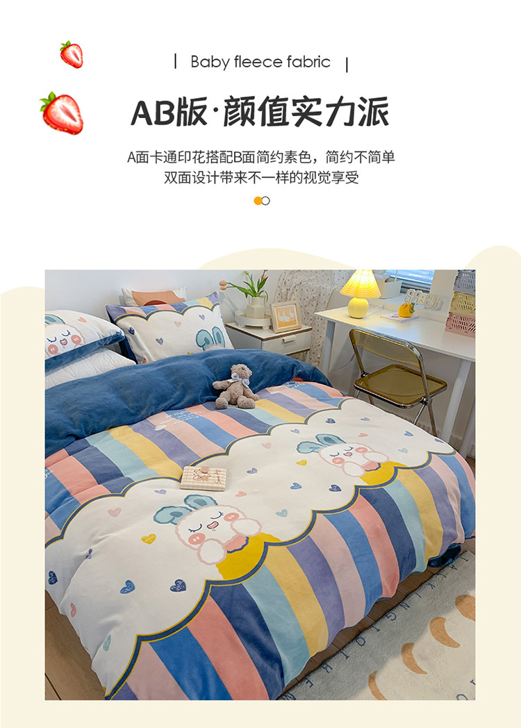 商品名称:(总)澳萝拉2021高克重卡通清新牛奶绒四件套水晶法莱绒