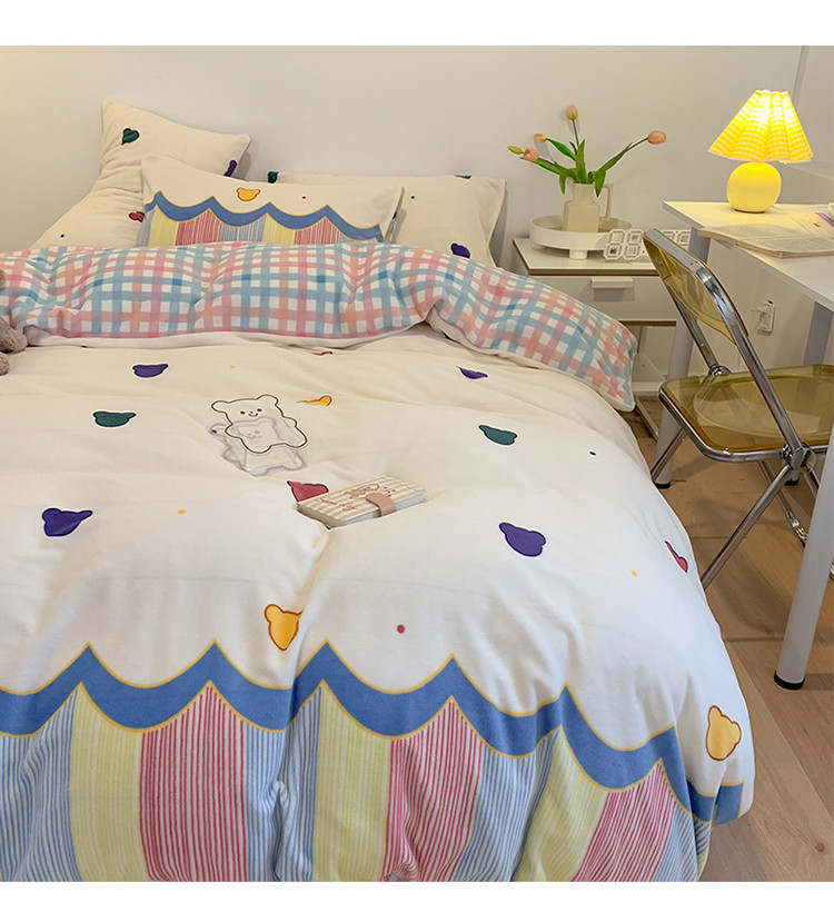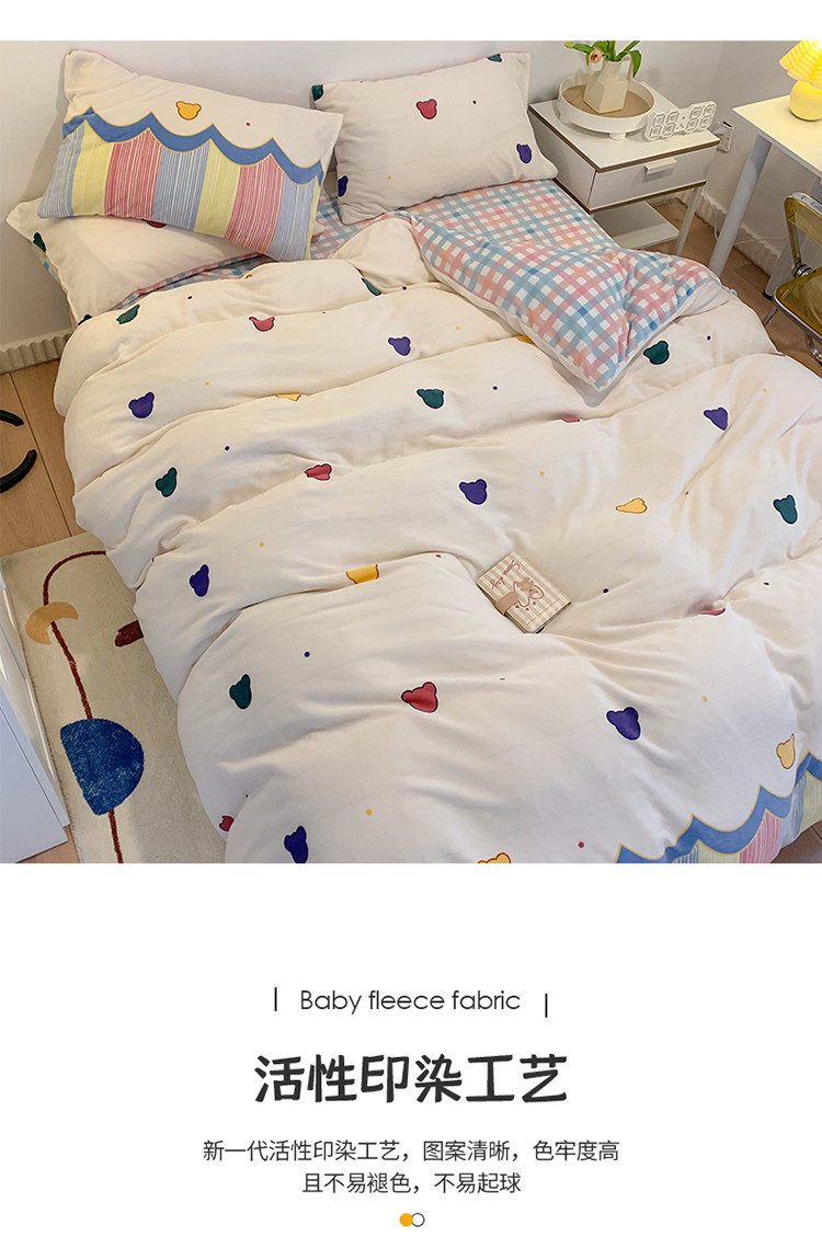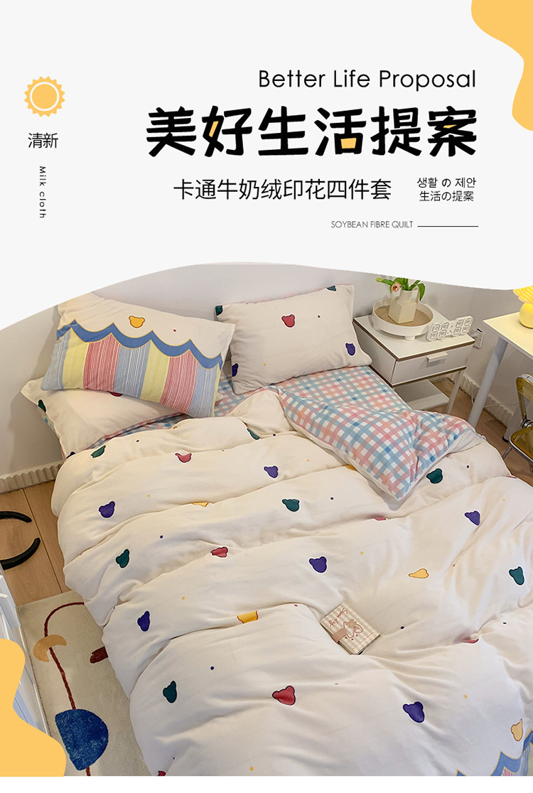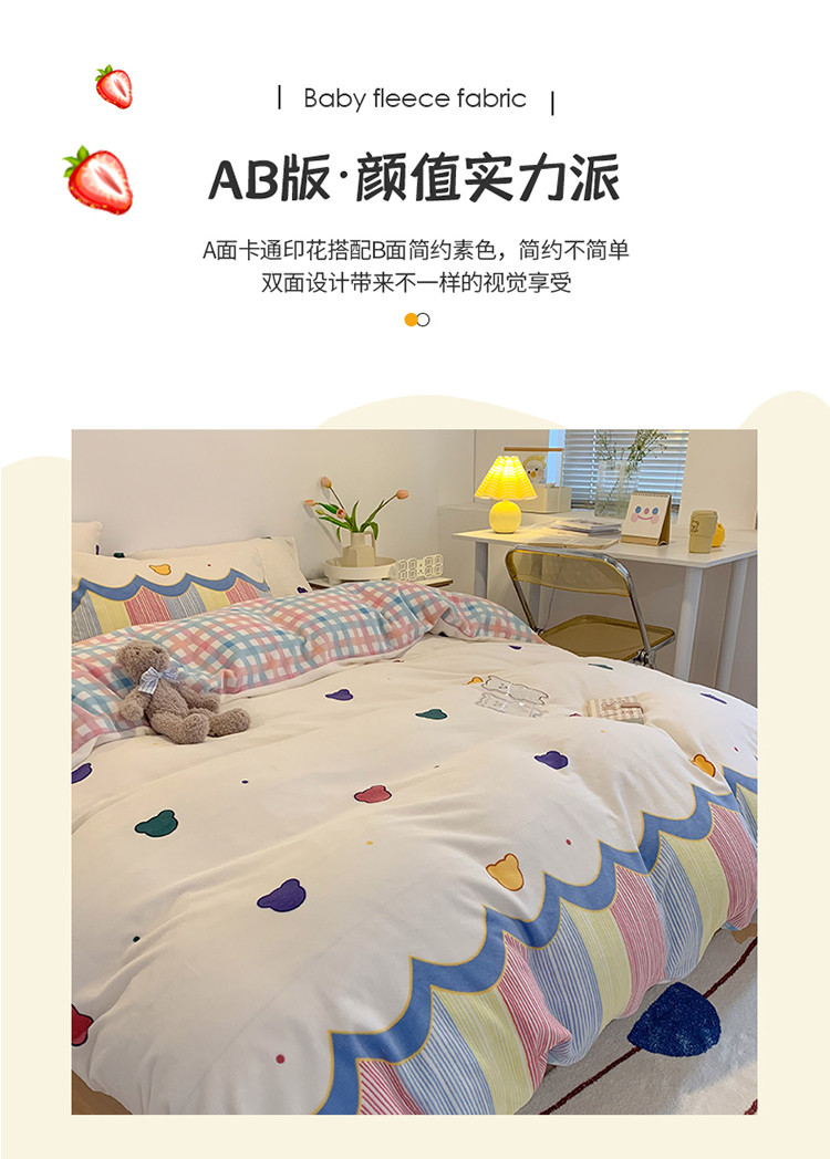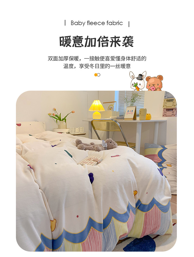 商品名称:澳萝拉2021高克重卡通清新牛奶绒四件套水晶法莱绒 少女心