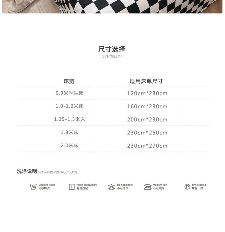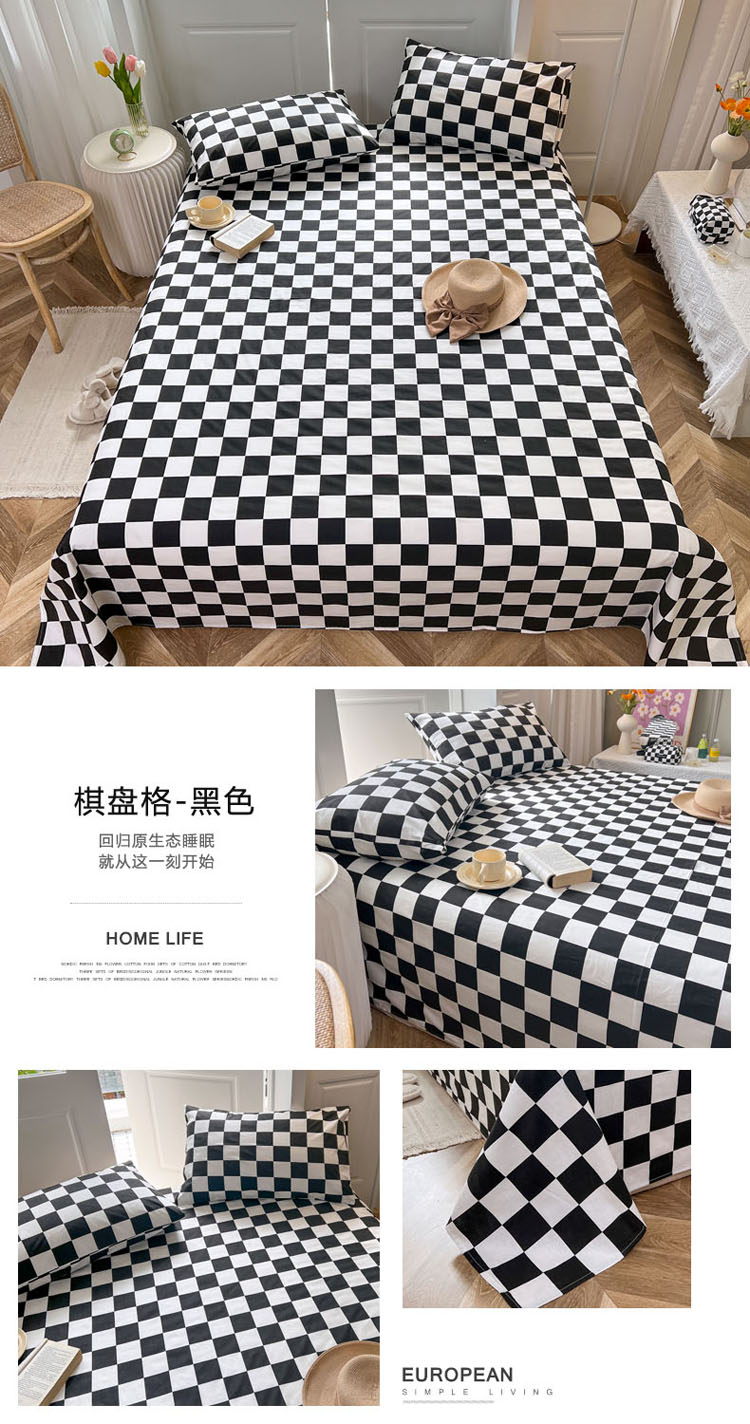 商品名称:梦家居2022新款40支13372纯棉床单单品 棋盘格-黑色