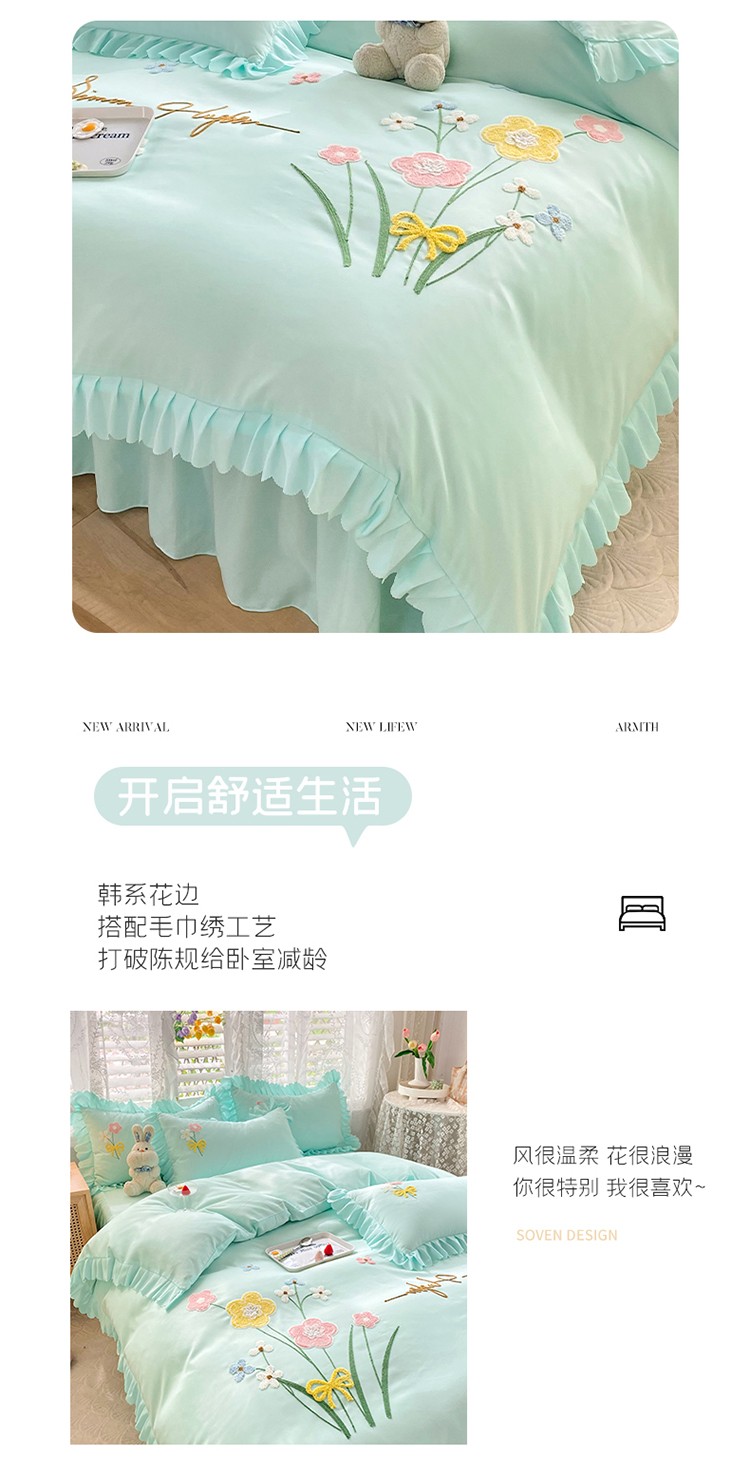 当前位置: 91家纺网 > 商品网购 > 床品套件 > 四件套 > 普通磨毛四件套 > 梦之岛2022新款韩版遇见系列毛巾绣四件套 遇见-薄荷绿