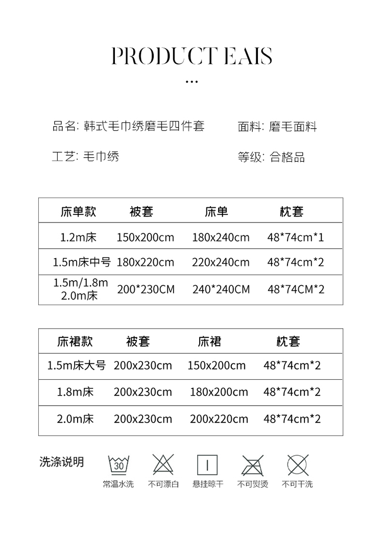 2m床裙款四件套(被套200x230cm) | ¥80.00 |