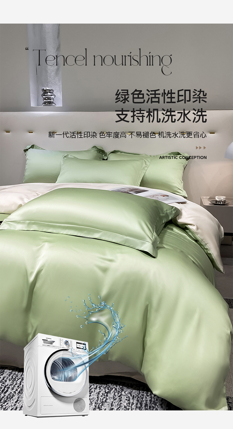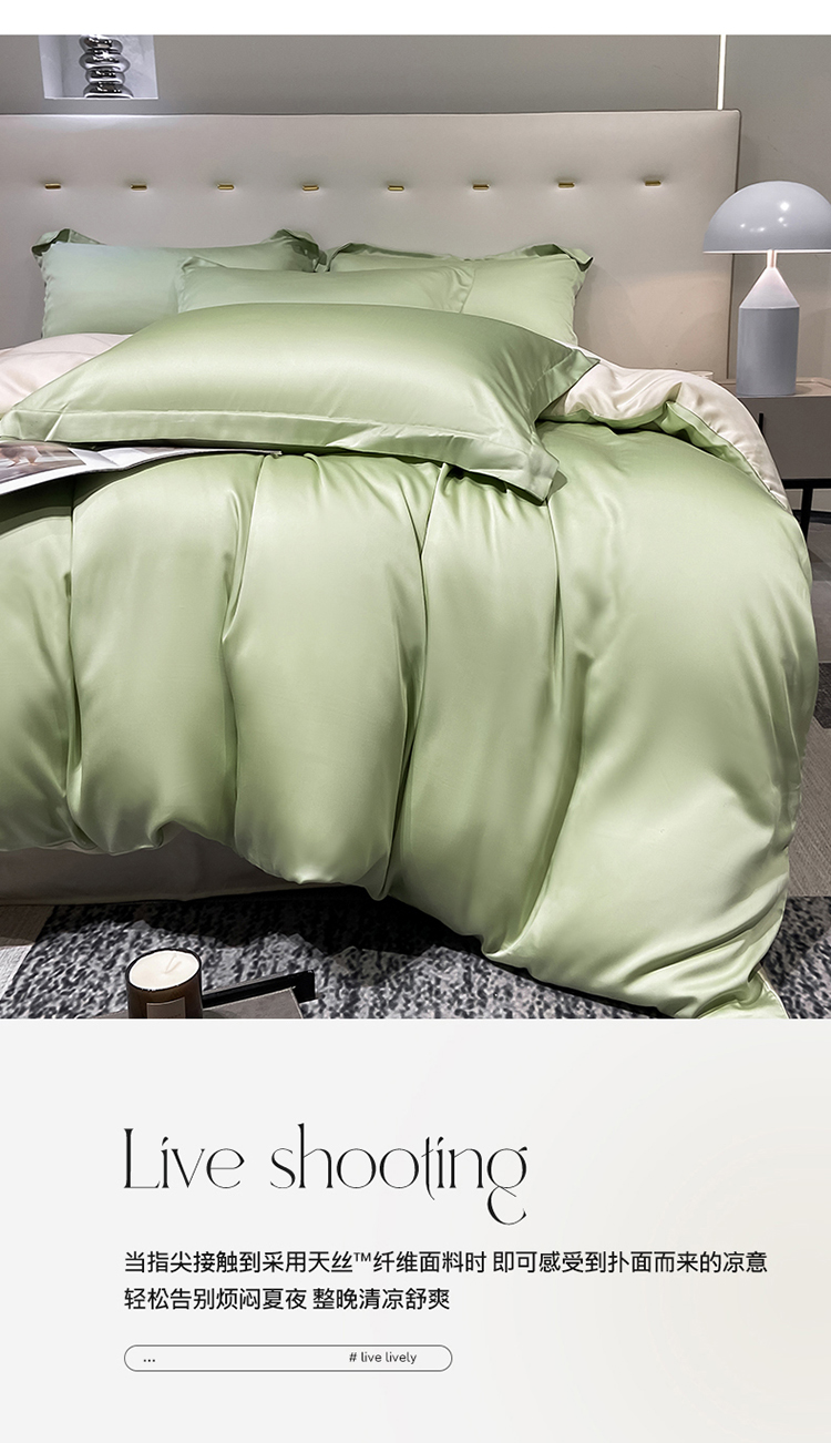 • 91家纺网 家纺一手货源 找家纺 涵宸家纺  2023新款天丝ᵀᴹ纯色-单被套 单被套-青草绿+奶昔