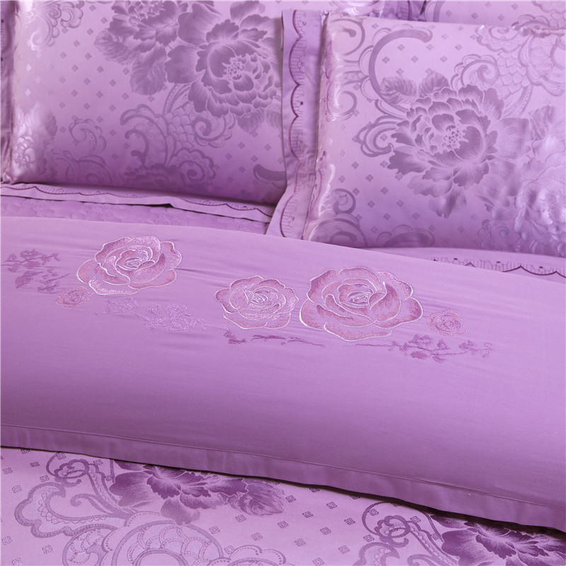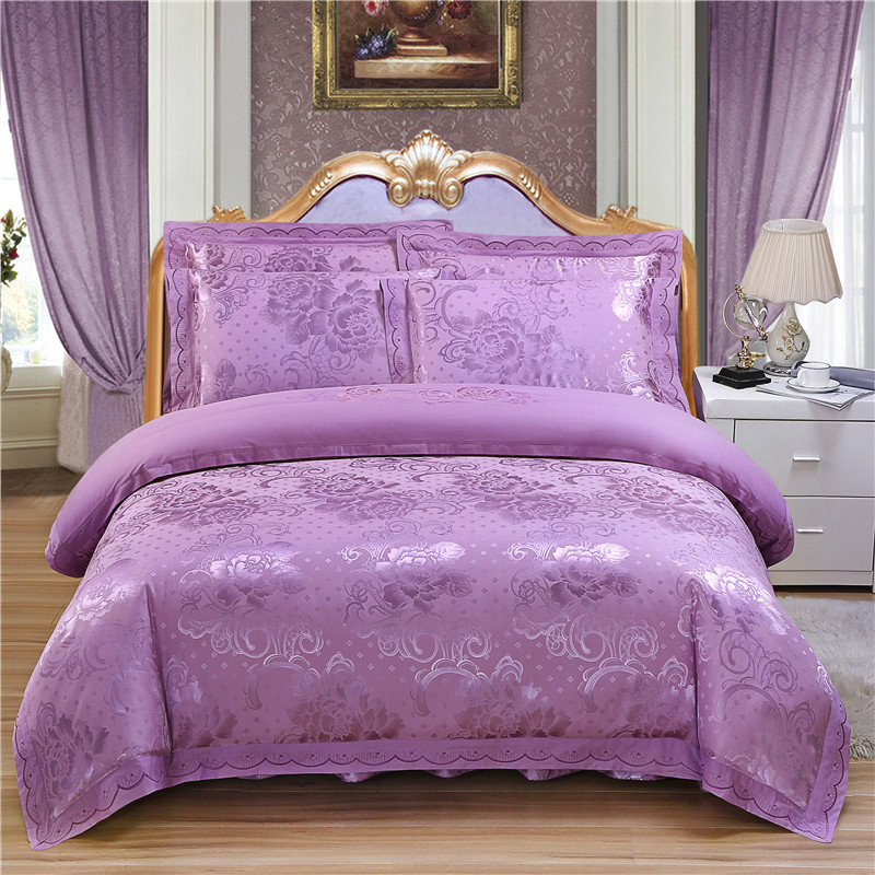 福丽莱家纺 2023新款贡缎提花床裙四件套(夹棉)花资风韵-浅紫