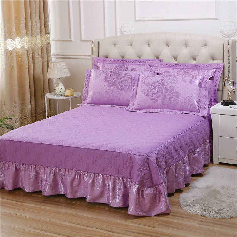 商品名称:福丽莱家纺 2023新款贡缎提花床裙四件套(夹棉)花资风韵-浅紫