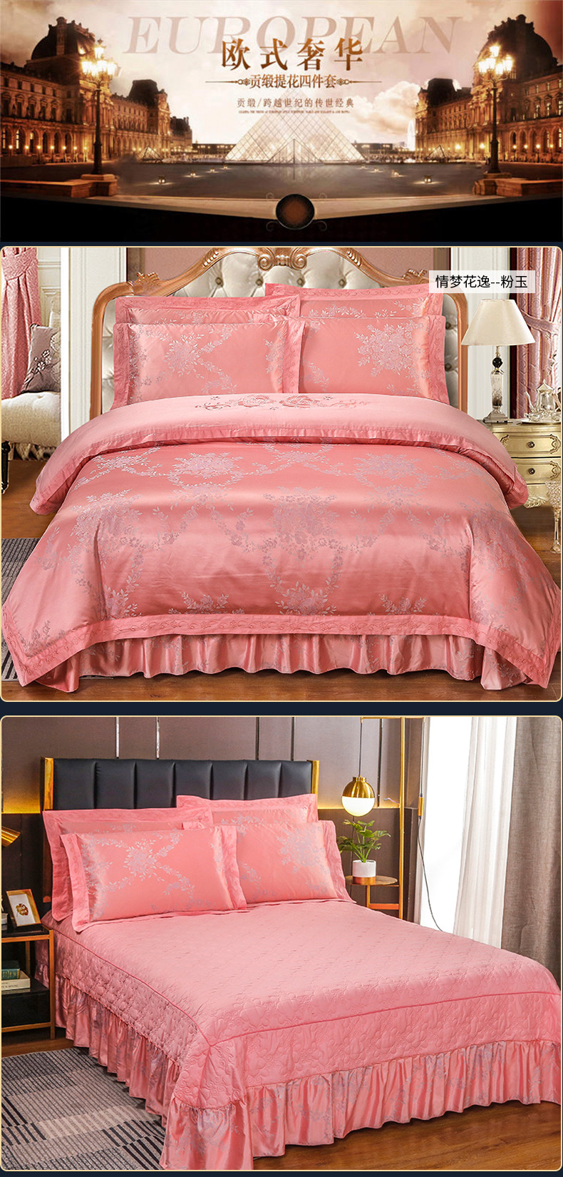 (总) 福丽莱家纺 2019贡缎提花床裙四件套(单层),黛香-豆沙,典范欧风-蓝灰,菲洛嘉,国色佳人,花团锦簇-银灰,花团锦簇-粉玉,玛格丽特-金兰,玫瑰风情-大红,摩卡庄园-紫驼,暖心芳妍-大红,浅芳菲-粉紫,喜上眉梢-砖红,仙境青色