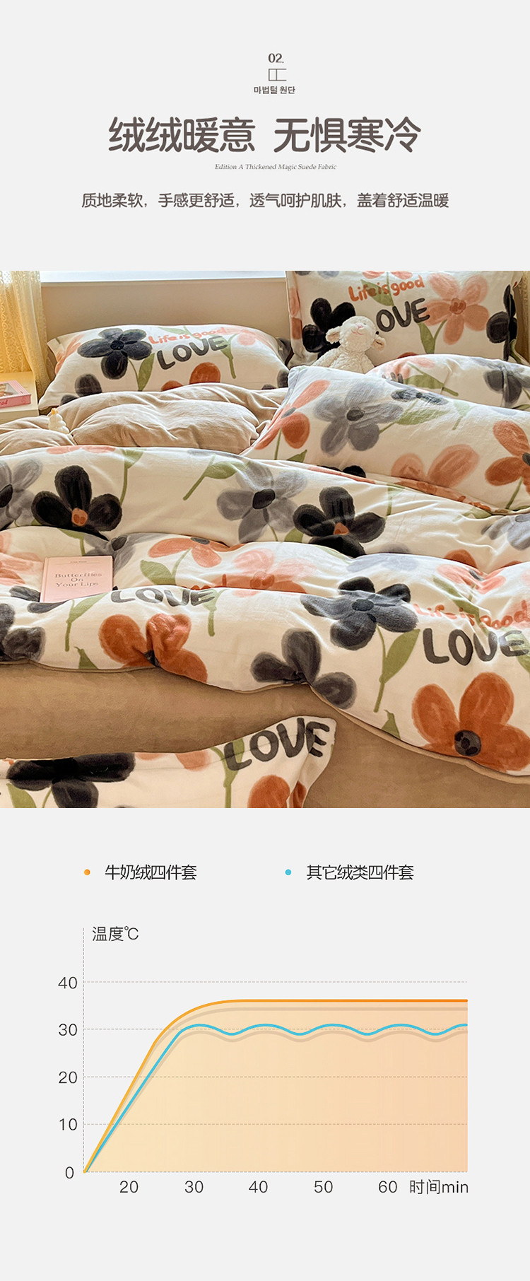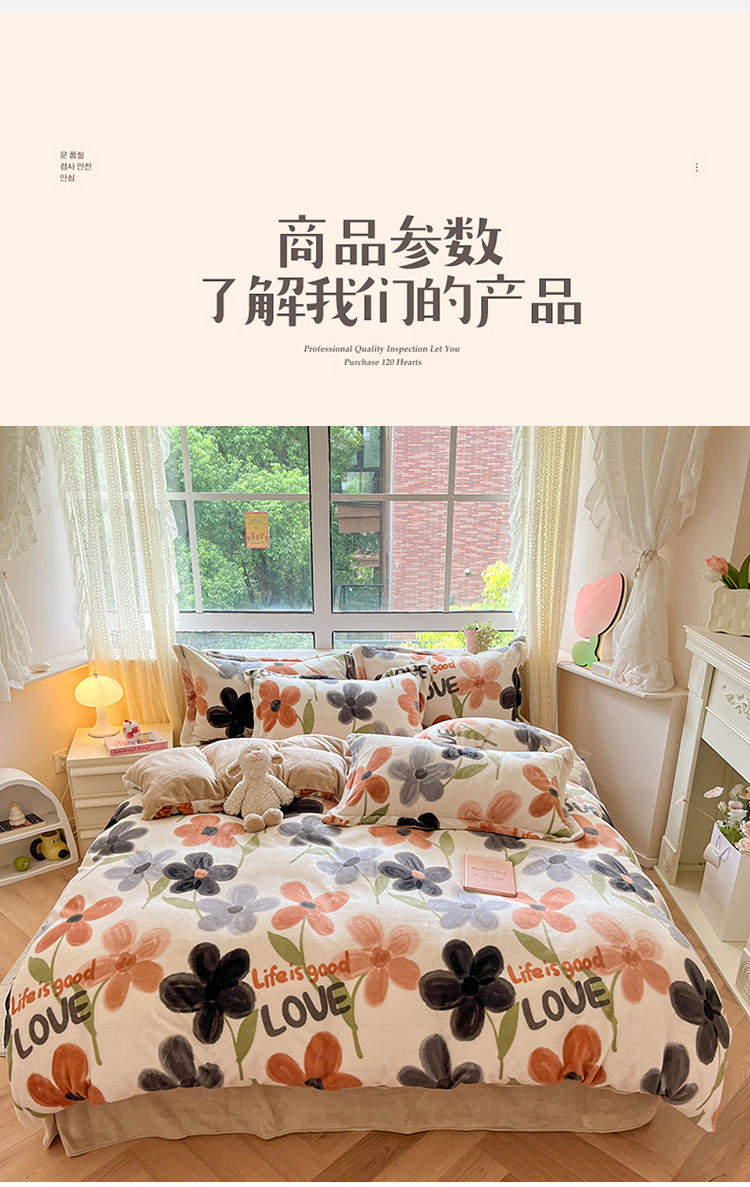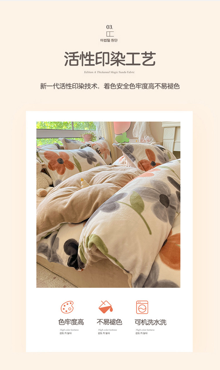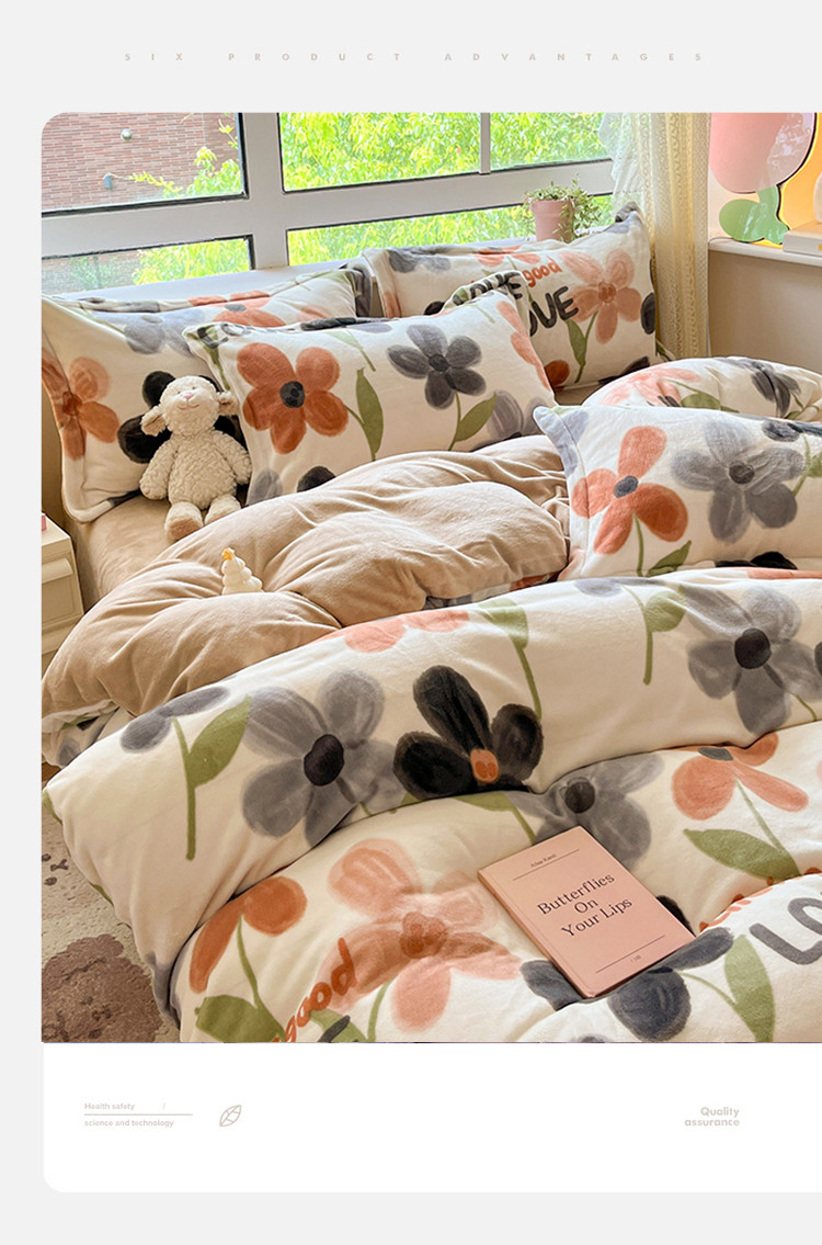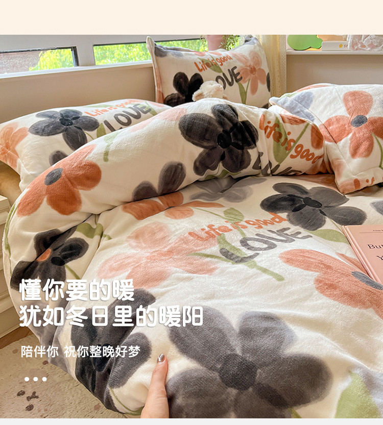 商品名称:沐棉 2023新款牛奶绒印花+小清新四件套 黑咖花朵