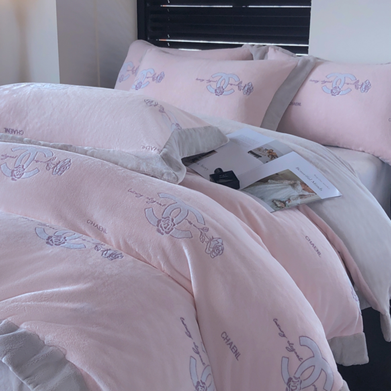榻尚家居 2023闻香系列雕花牛奶绒四件套 闻香 微醺粉