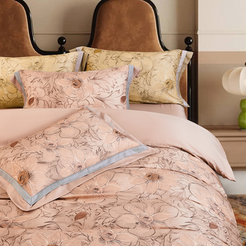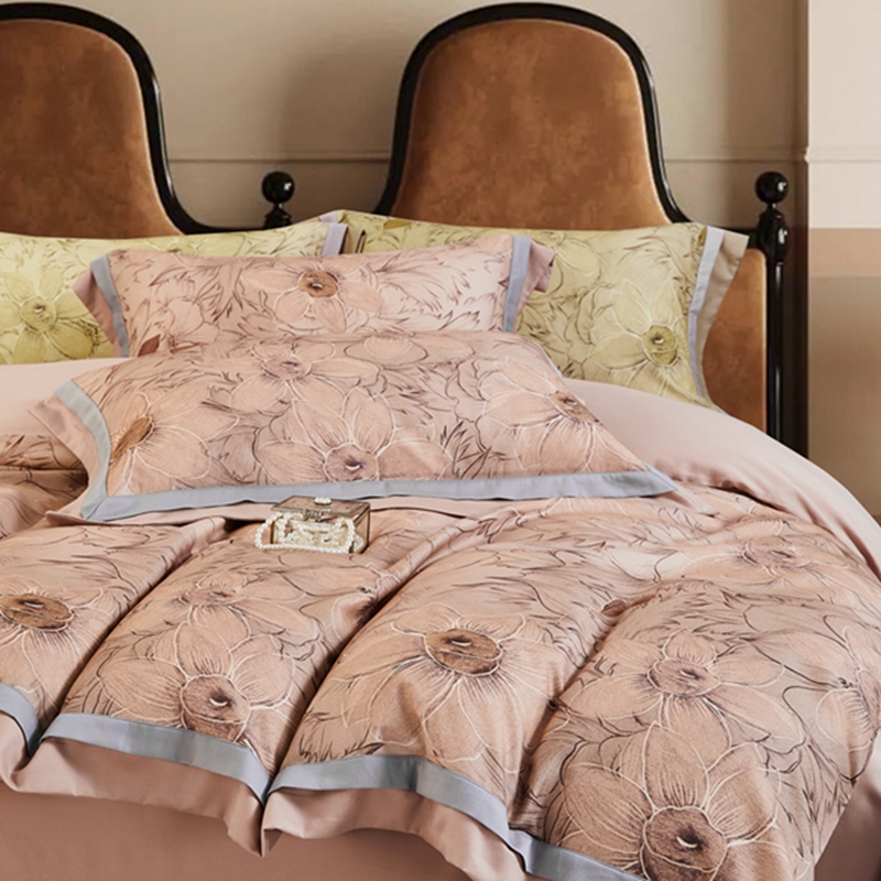(总)榻尚家居 2023新款纯棉贡缎提花四件套(会员-10),缤兰,烟粉