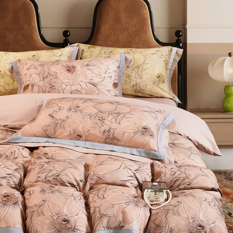 (总)榻尚家居 2025新款天丝床盖夏被夏凉被空调被四件套-佩利兹,佩利兹床盖夏被四件套-粉色,佩利兹床盖夏被四件套-香槟